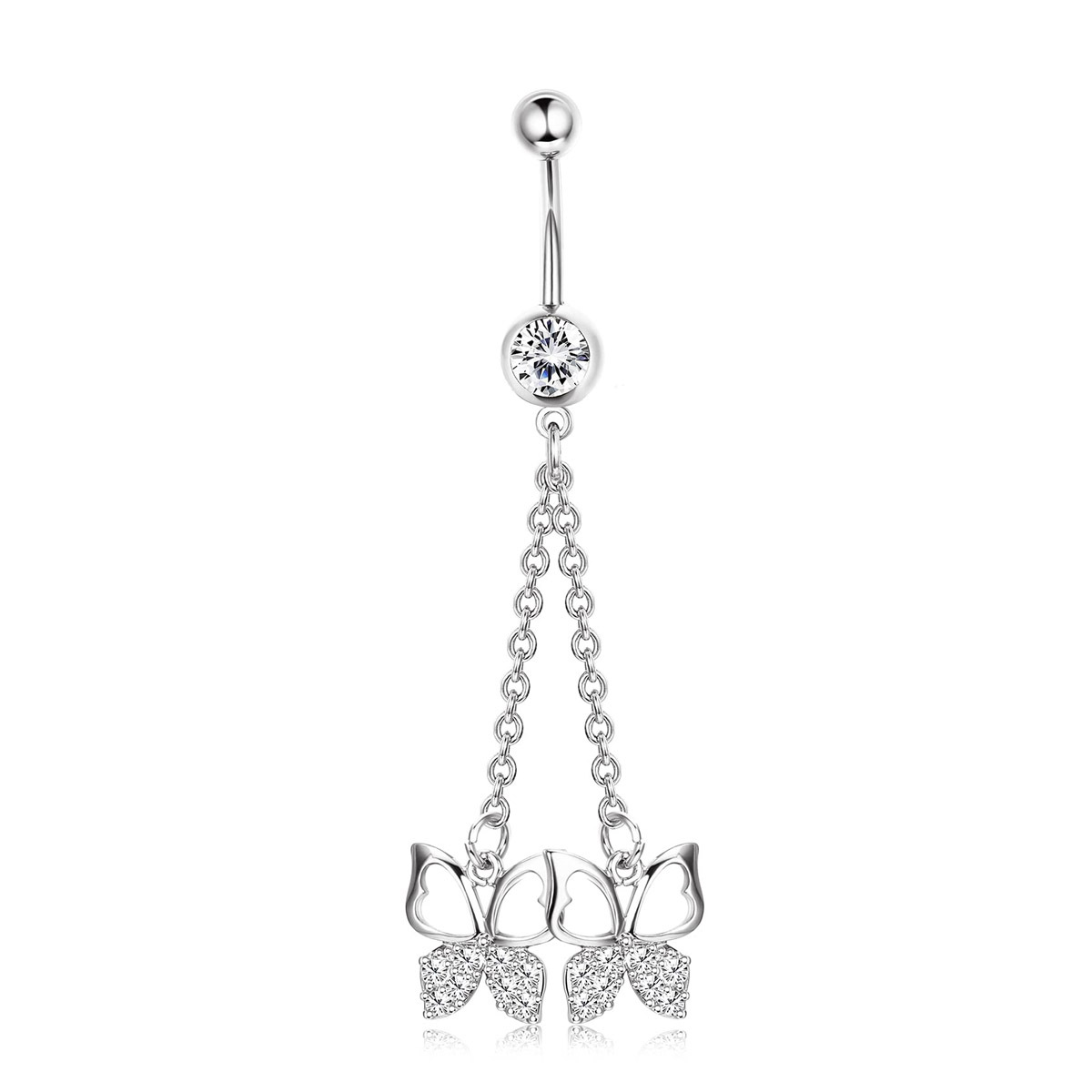 Anneau de ventre en acier inoxydable, papillon, avec strass, plus de couleurs à choisir Vendu par PC