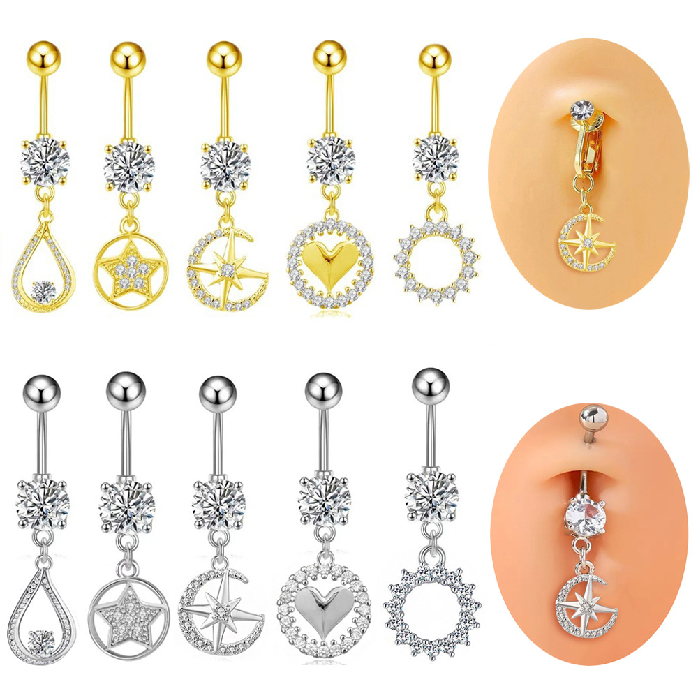 Anneau de ventre en acier inoxydable, acier inoxydable 316L, Rond, avec strass, plus de couleurs à choisir Vendu par lot