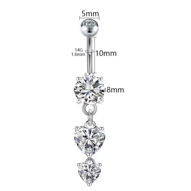 Anneau de ventre en acier inoxydable, avec zircon cubique, pour femme, Vendu par PC