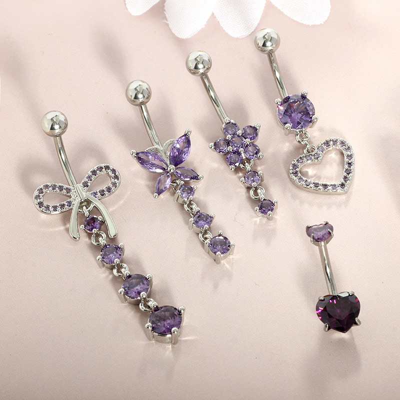 Anneau de ventre en acier inoxydable, avec zircon cubique, pour femme, Vendu par PC