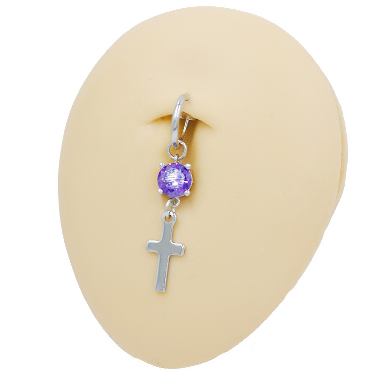 Acier inoxydable 304 anneau de ventre, avec alliage de zinc, croix, Placage, unisexe & avec strass, plus de couleurs à choisir, 10PC/lot, Vendu par lot