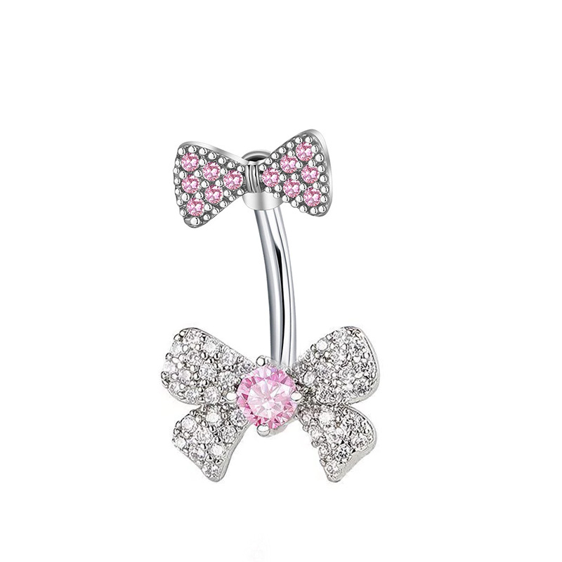 Acier inoxydable 304 anneau de ventre, Noeud papillon, unisexe & pavé de micro zircon, plus de couleurs à choisir, belly ring rod size 1.6x10mm, Vendu par PC