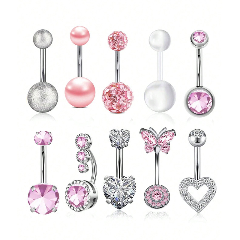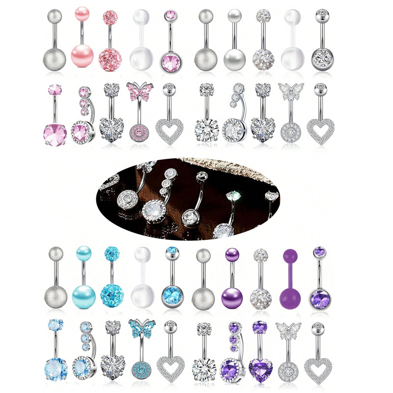 Anneau de ventre en acier inoxydable, acier inoxydable 316L, Rond, avec strass, plus de couleurs à choisir Vendu par lot