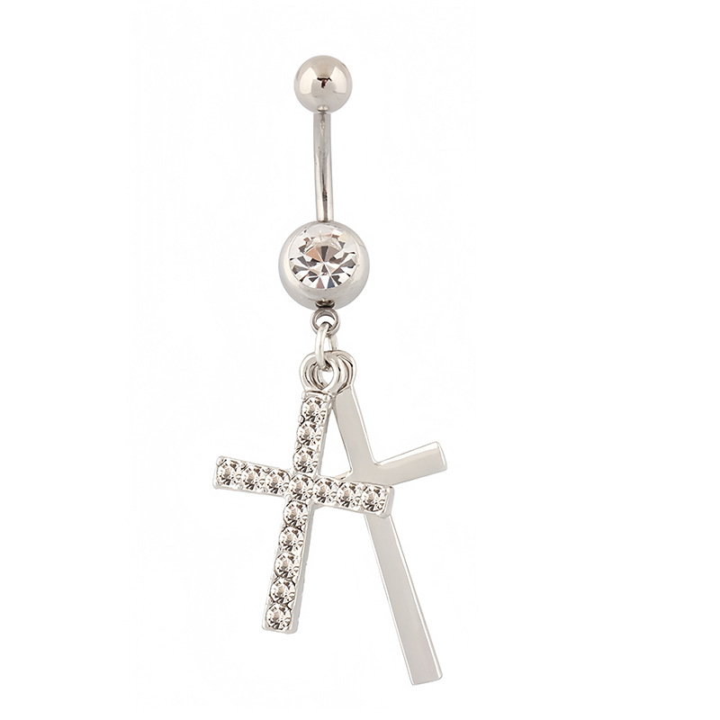 Acier inoxydable 304 anneau de ventre, croix, unisexe & styles différents pour le choix & pavé de micro zircon, belly ring rod size 1.6x10mm, Vendu par PC
