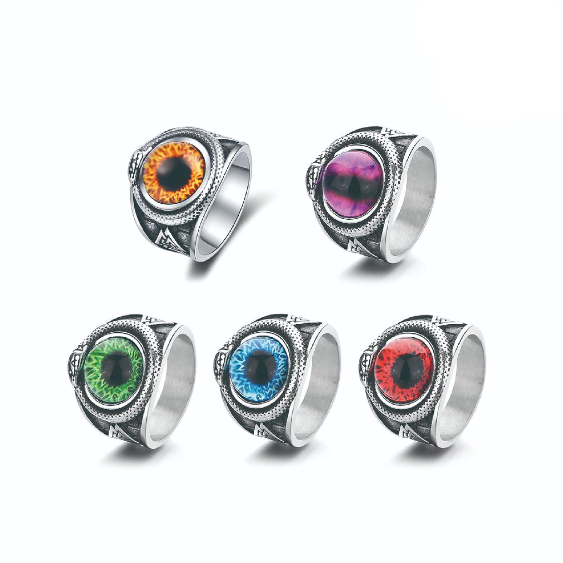 Acier inoxydable 304 bague, avec Acrylique, Mauvais œil, normes différentes pour le choix & pour homme & noircir, plus de couleurs à choisir, Taille:7-14, Vendu par PC
