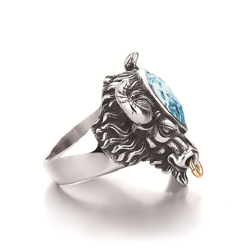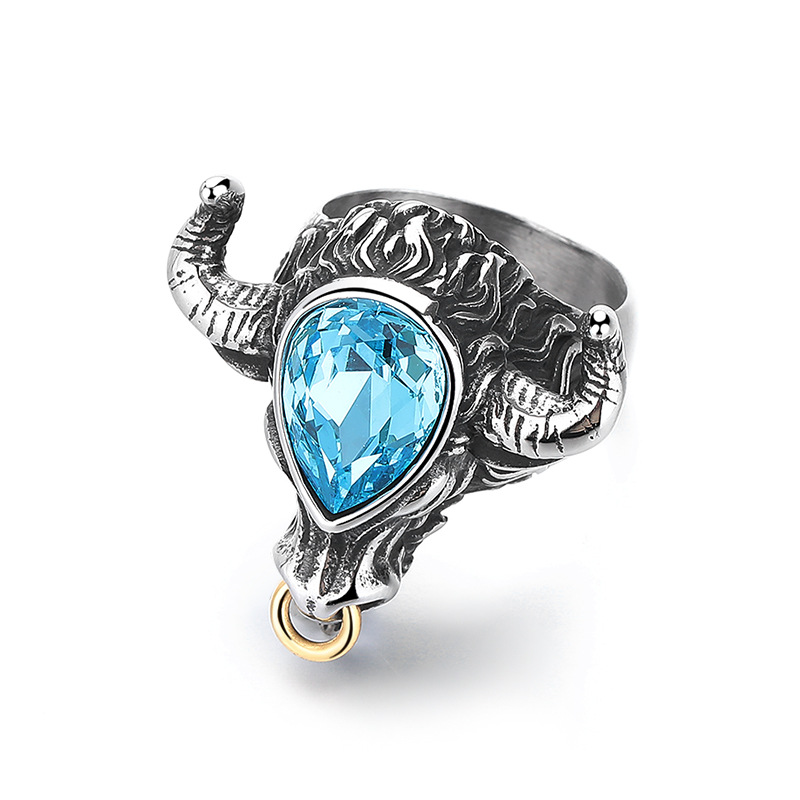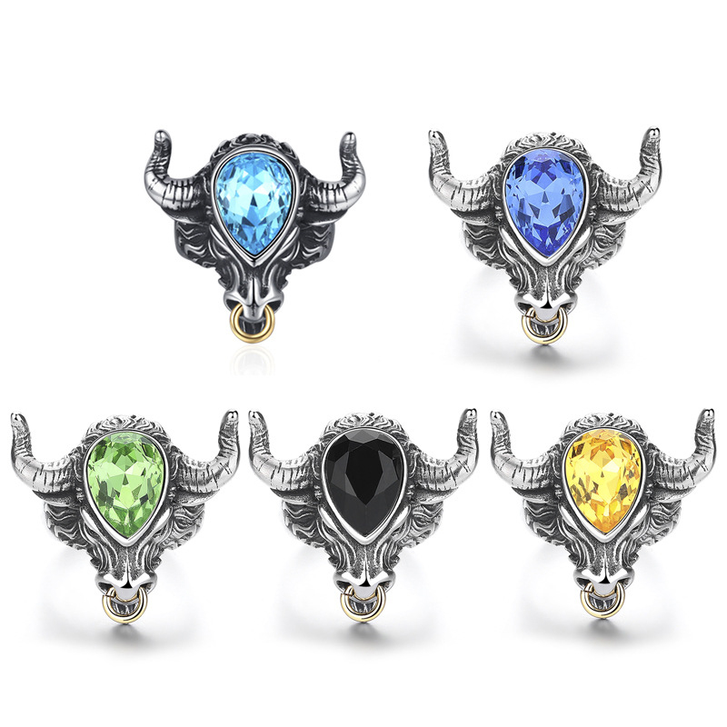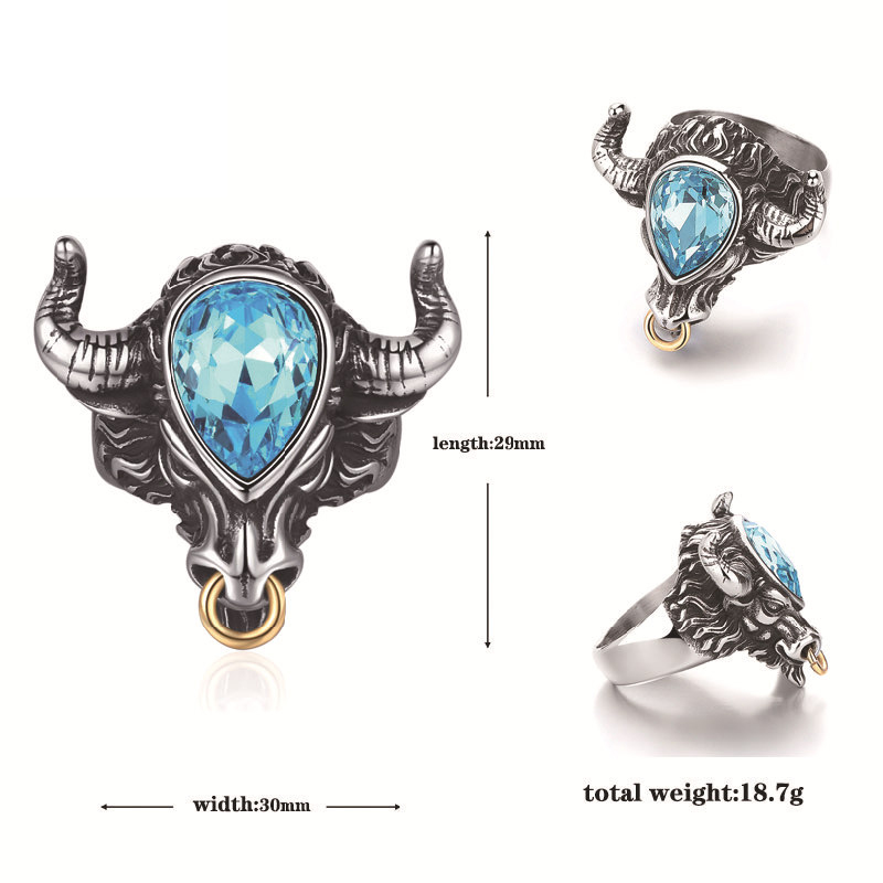 Acier inoxydable 304 bague, avec verre, bœuf, normes différentes pour le choix & pour homme & noircir, plus de couleurs à choisir, Taille:7-13, Vendu par PC