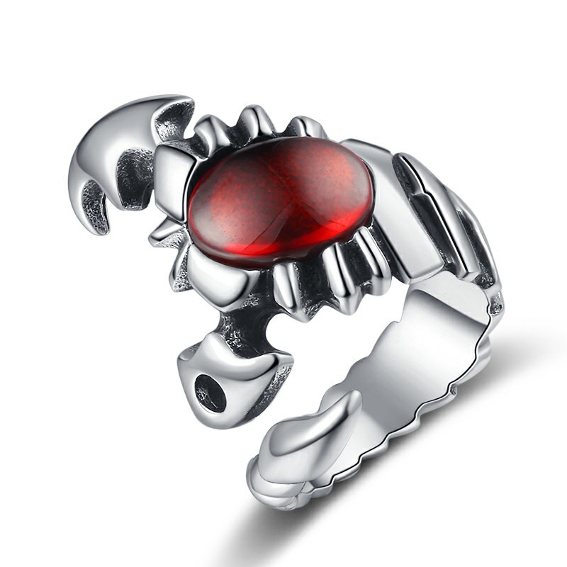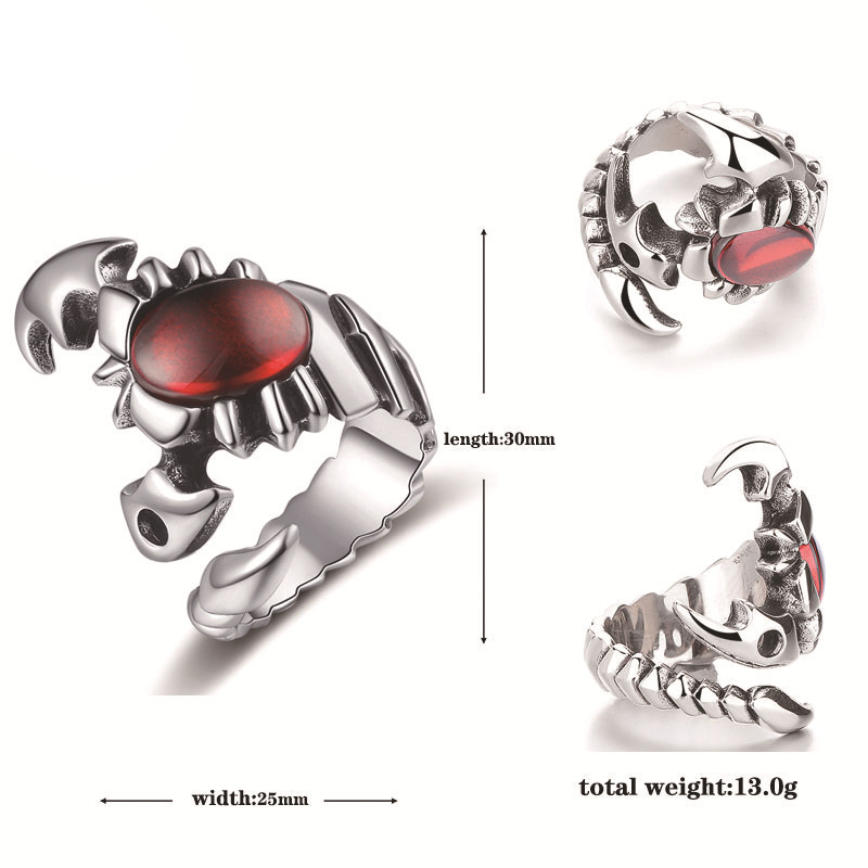 Acier inoxydable 304 bague, avec Acrylique, scorpion, normes différentes pour le choix & pour homme & noircir, couleur originale, Taille:7-13, Vendu par PC