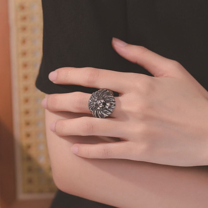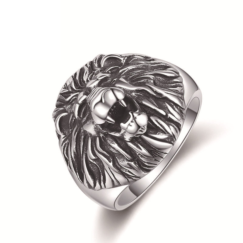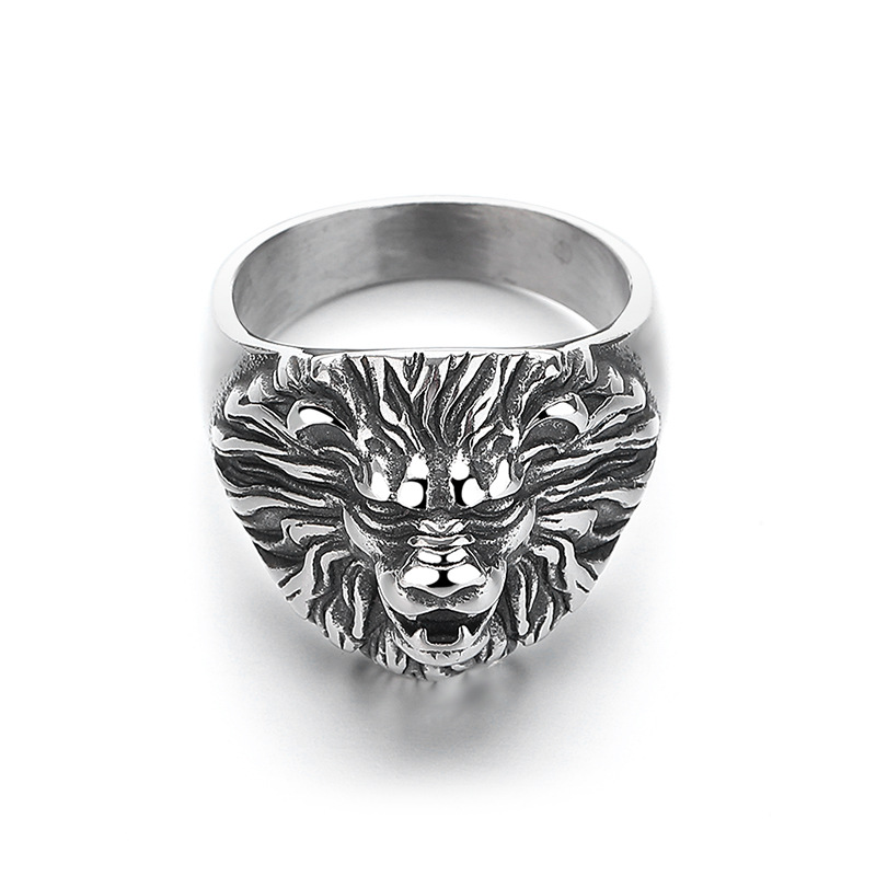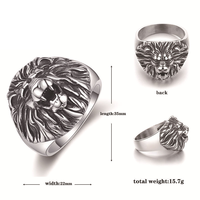 Acier inoxydable 304 bague, lion, normes différentes pour le choix & pour homme & noircir, couleur originale, Taille:7-13, Vendu par PC