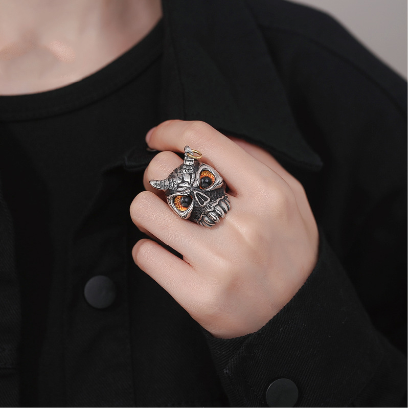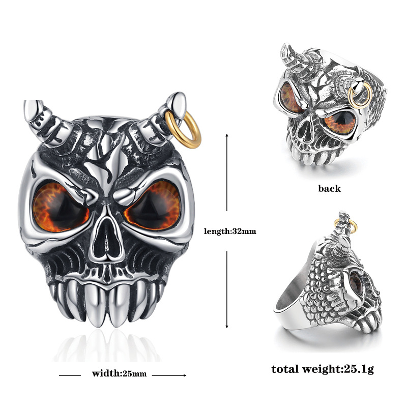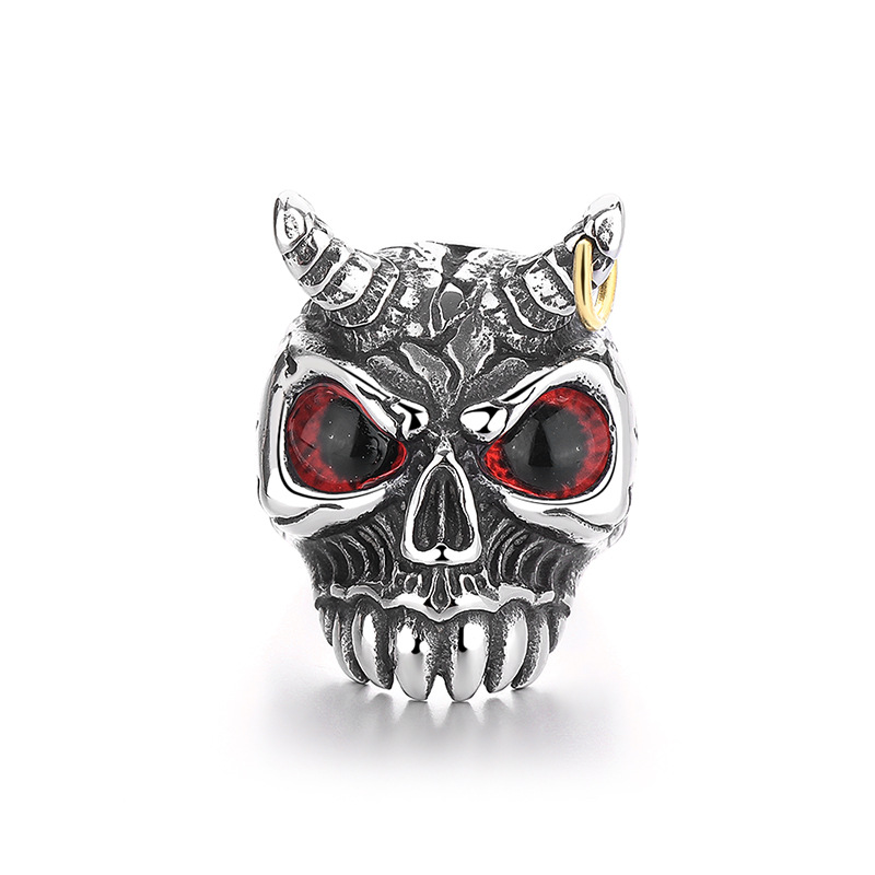Acier inoxydable 304 bague, avec Acrylique, crane, normes différentes pour le choix & pour homme & noircir, plus de couleurs à choisir, Taille:7-14, Vendu par PC