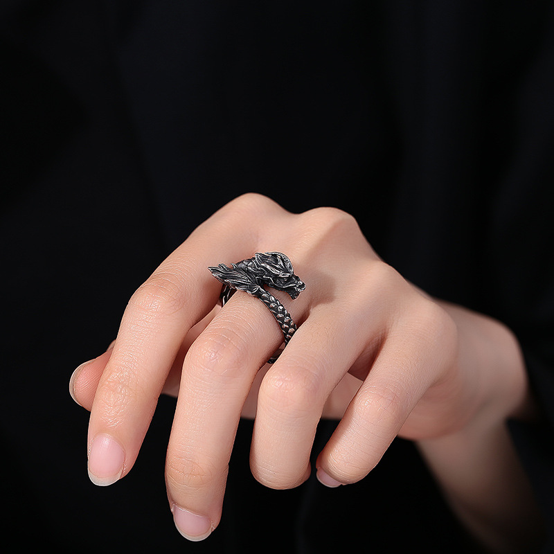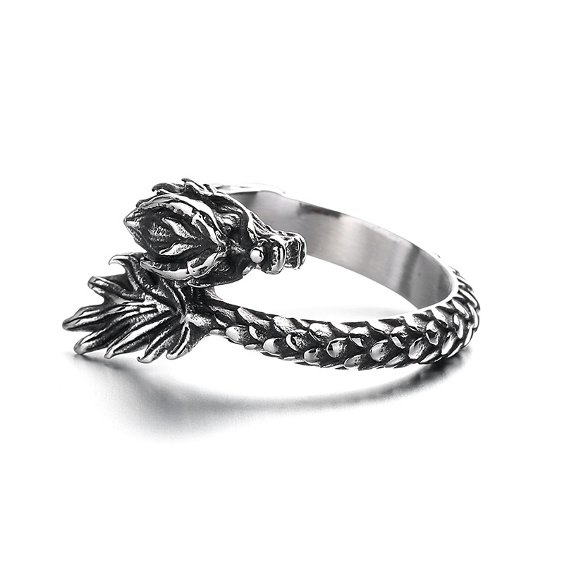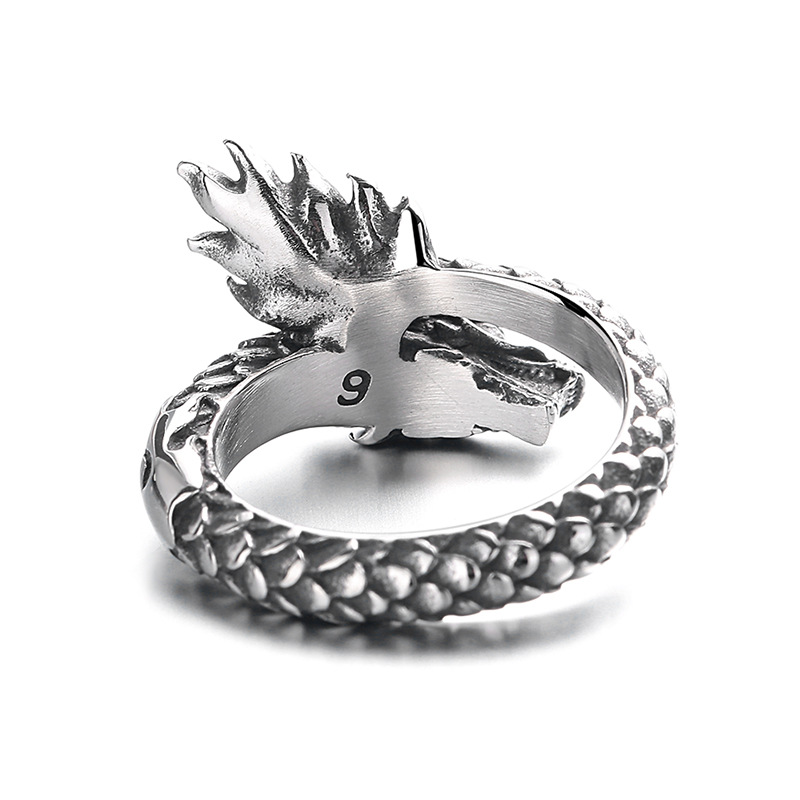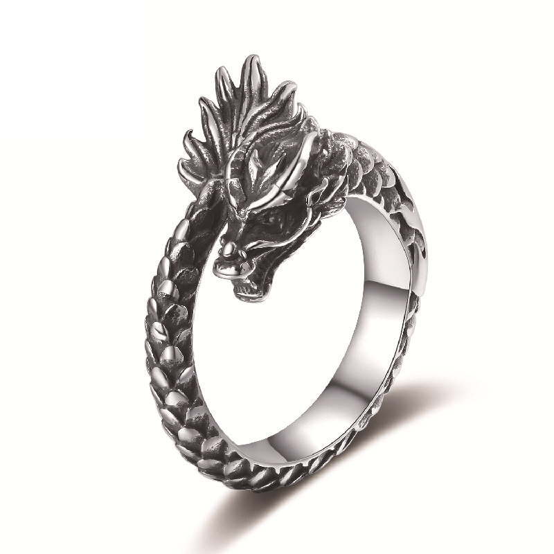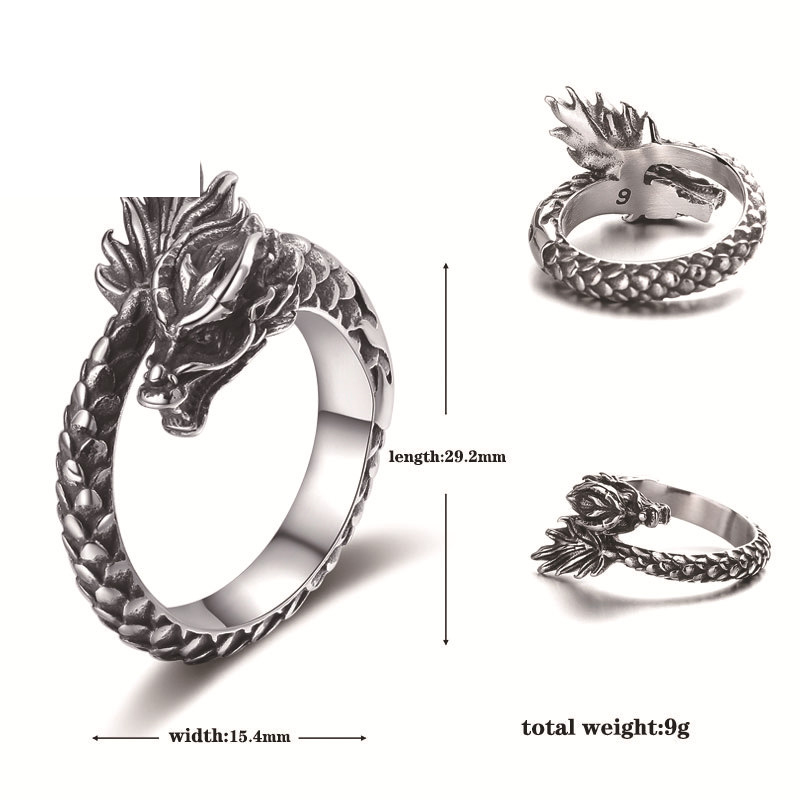 Acier inoxydable 304 bague, dragon, normes différentes pour le choix & pour homme & noircir, couleur originale, Taille:6-12, Vendu par PC