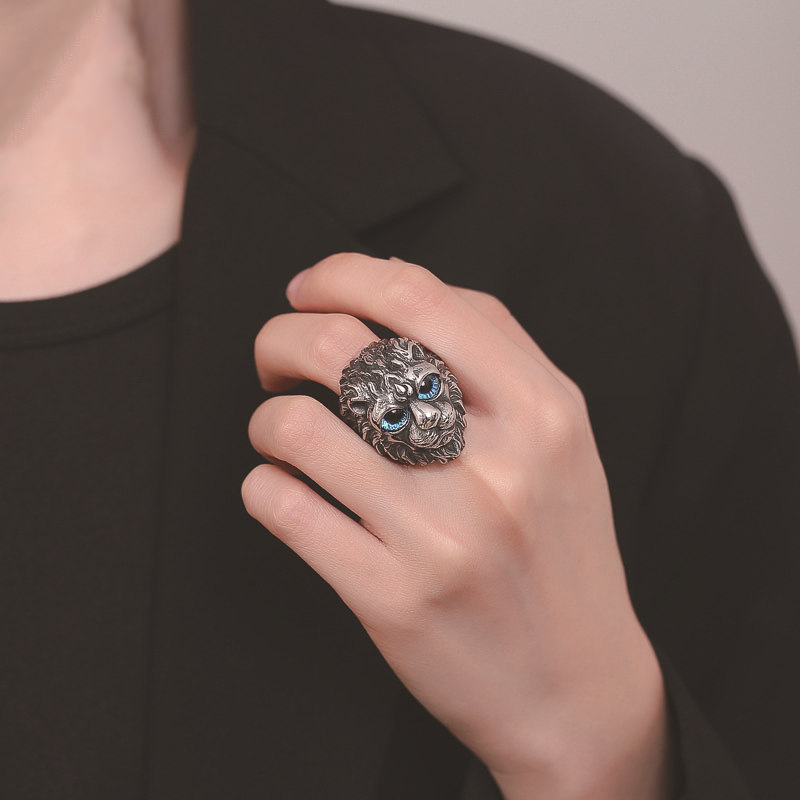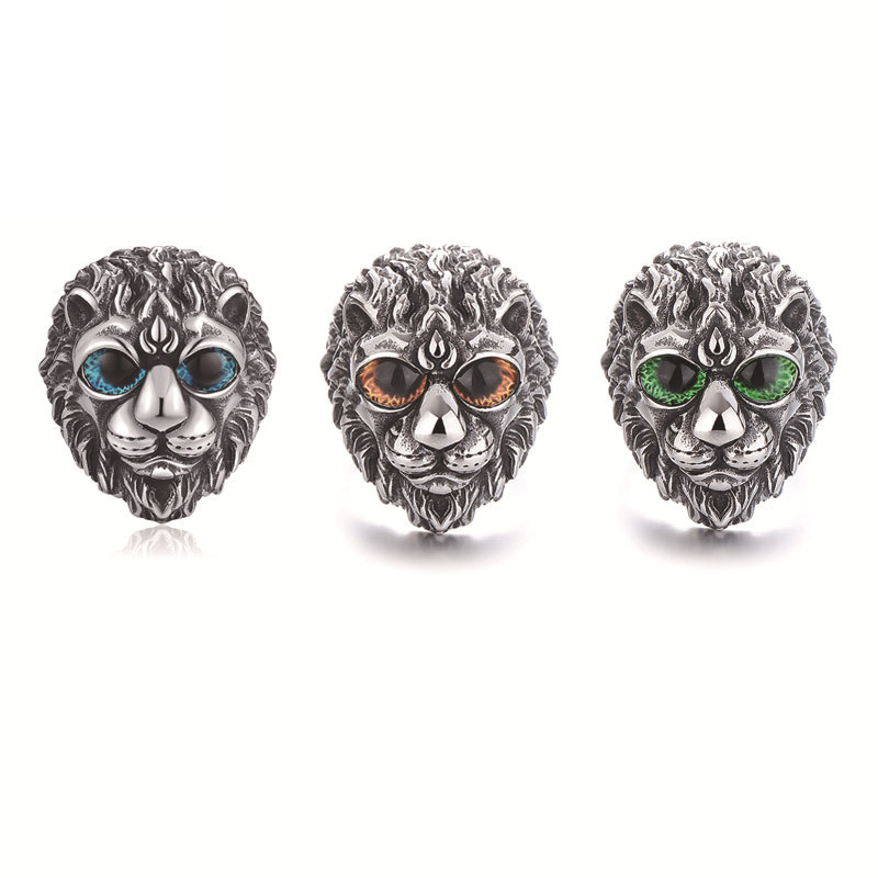 Acier inoxydable 304 bague, avec Acrylique, lion, normes différentes pour le choix & pour homme & noircir, plus de couleurs à choisir, Taille:7-14, Vendu par PC