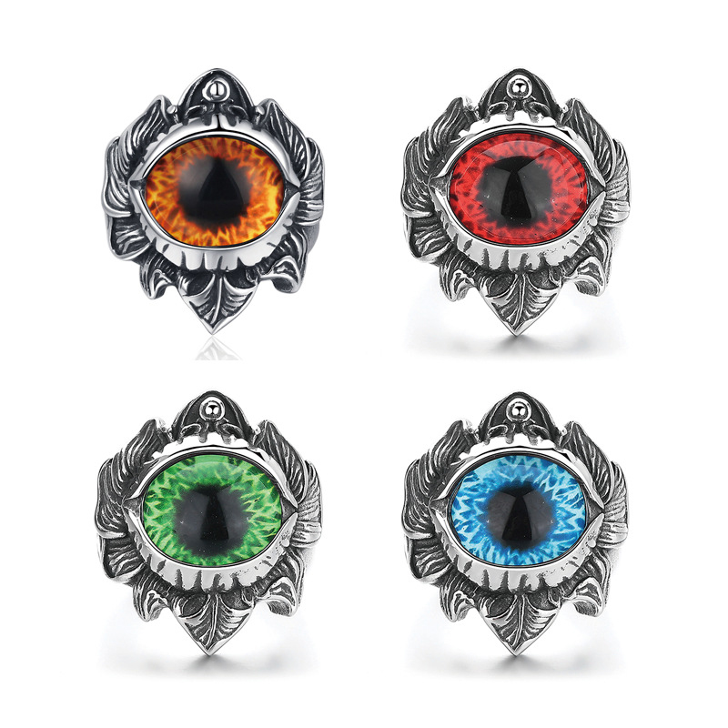 Acier inoxydable 304 bague, avec Acrylique, Mauvais œil, normes différentes pour le choix & pour homme & noircir, plus de couleurs à choisir, Taille:7-14, Vendu par PC