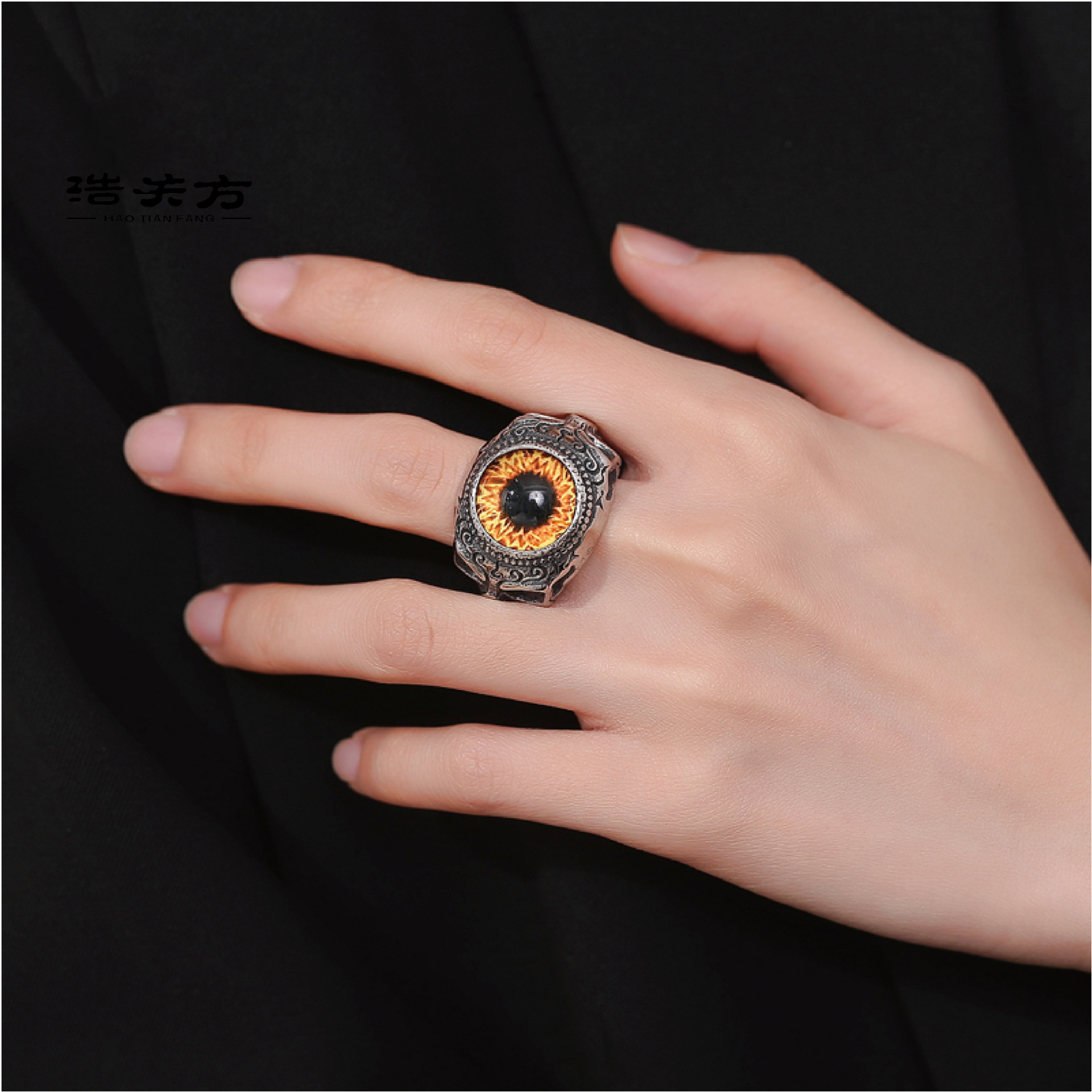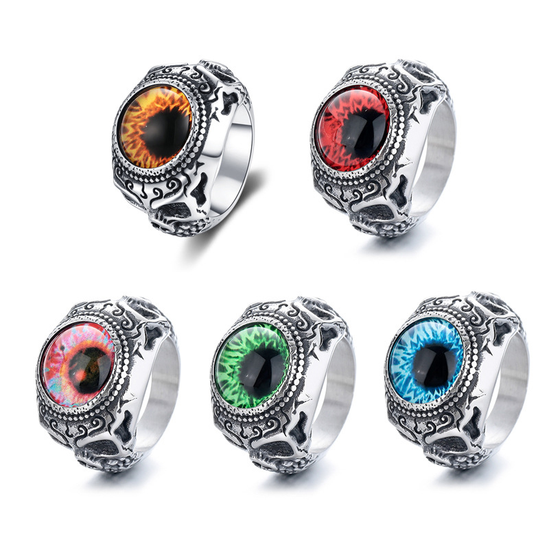 Acier inoxydable 304 bague, avec Acrylique, Mauvais œil, normes différentes pour le choix & pour homme & noircir, plus de couleurs à choisir, Taille:7-14, Vendu par PC