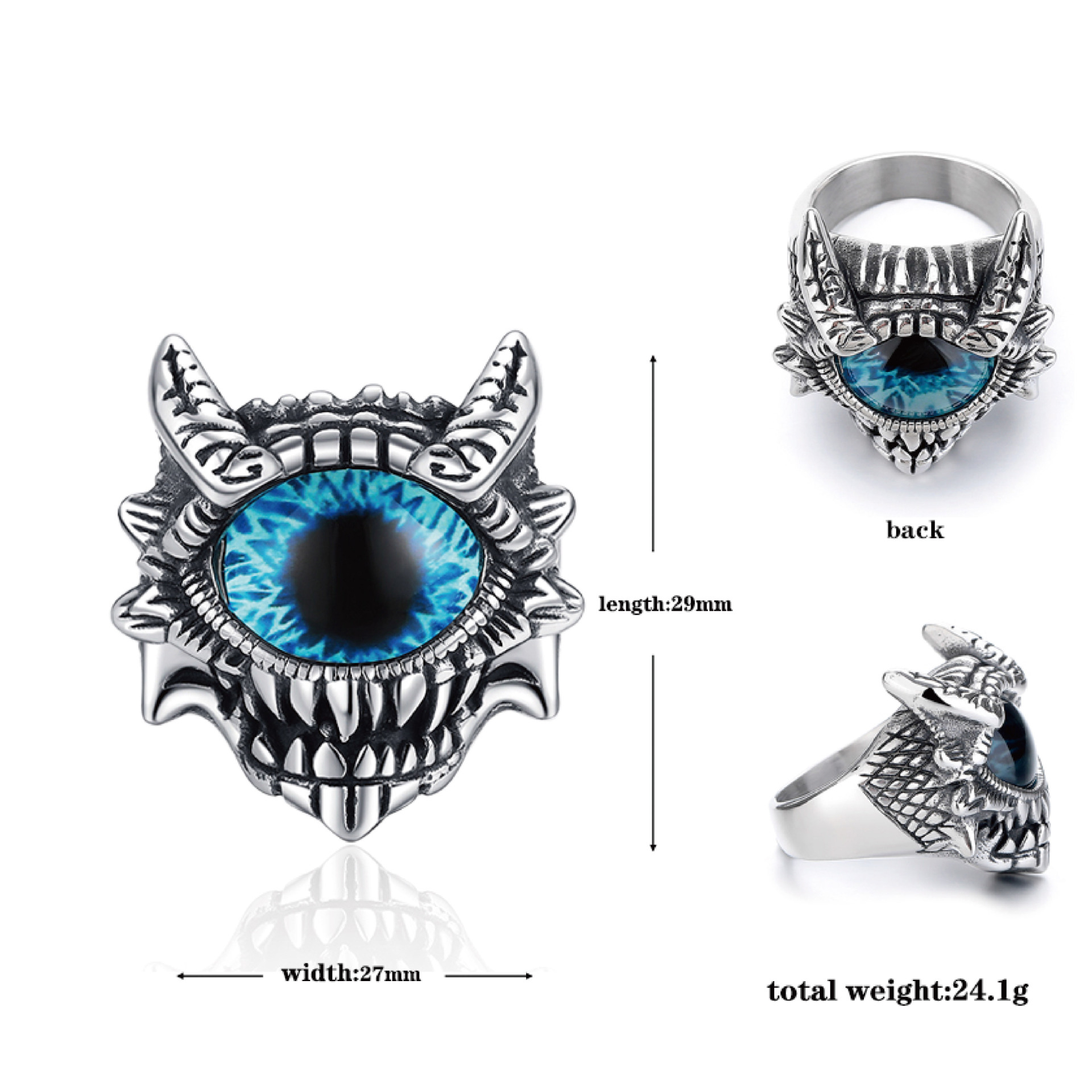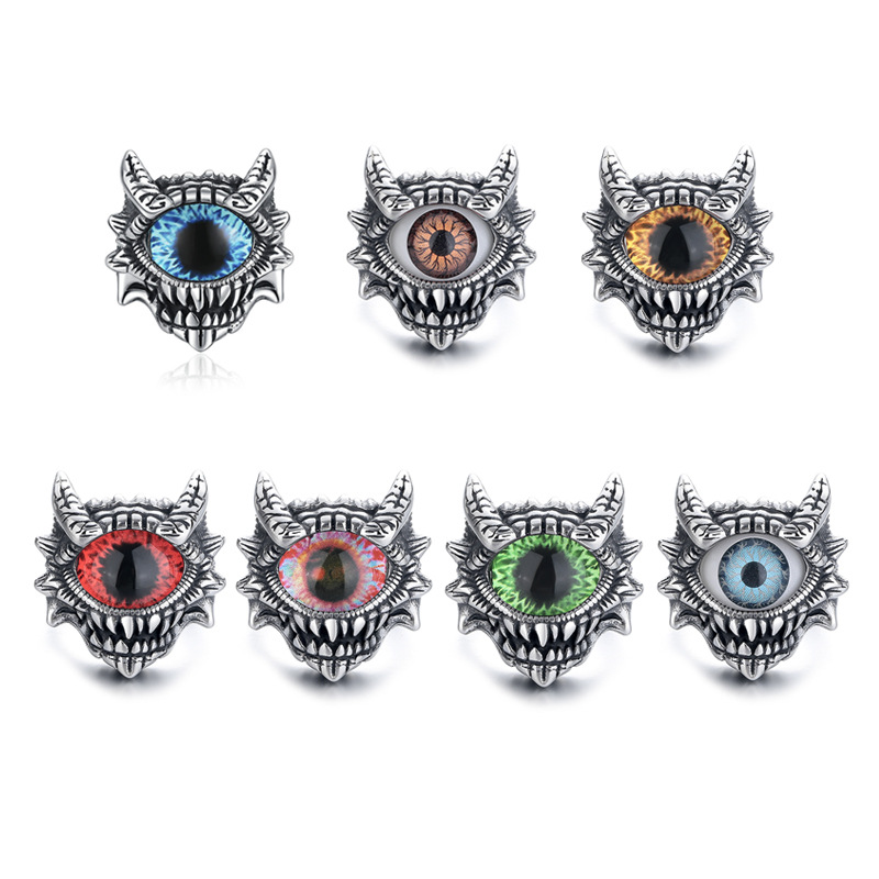 Acier inoxydable 304 bague, avec Acrylique, Mauvais œil, normes différentes pour le choix & pour homme & noircir, plus de couleurs à choisir, Taille:7-14, Vendu par PC