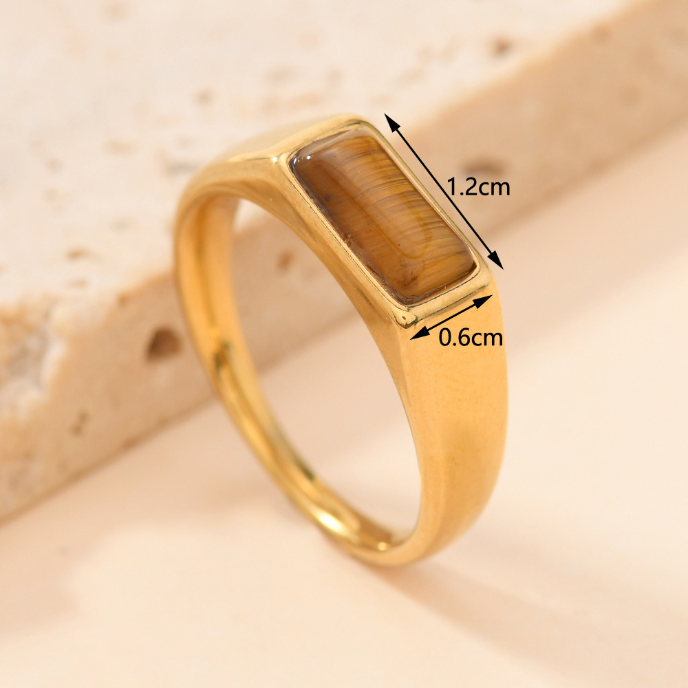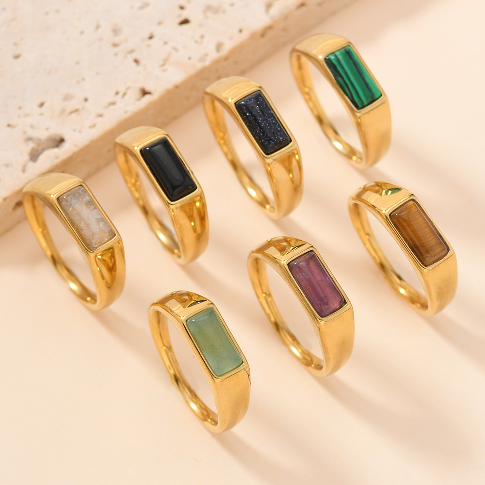 Acier inoxydable 304 bague, avec Pierre naturelle, Placage de couleur d'or, différents matériaux pour le choix & unisexe & normes différentes pour le choix, plus de couleurs à choisir, Vendu par PC