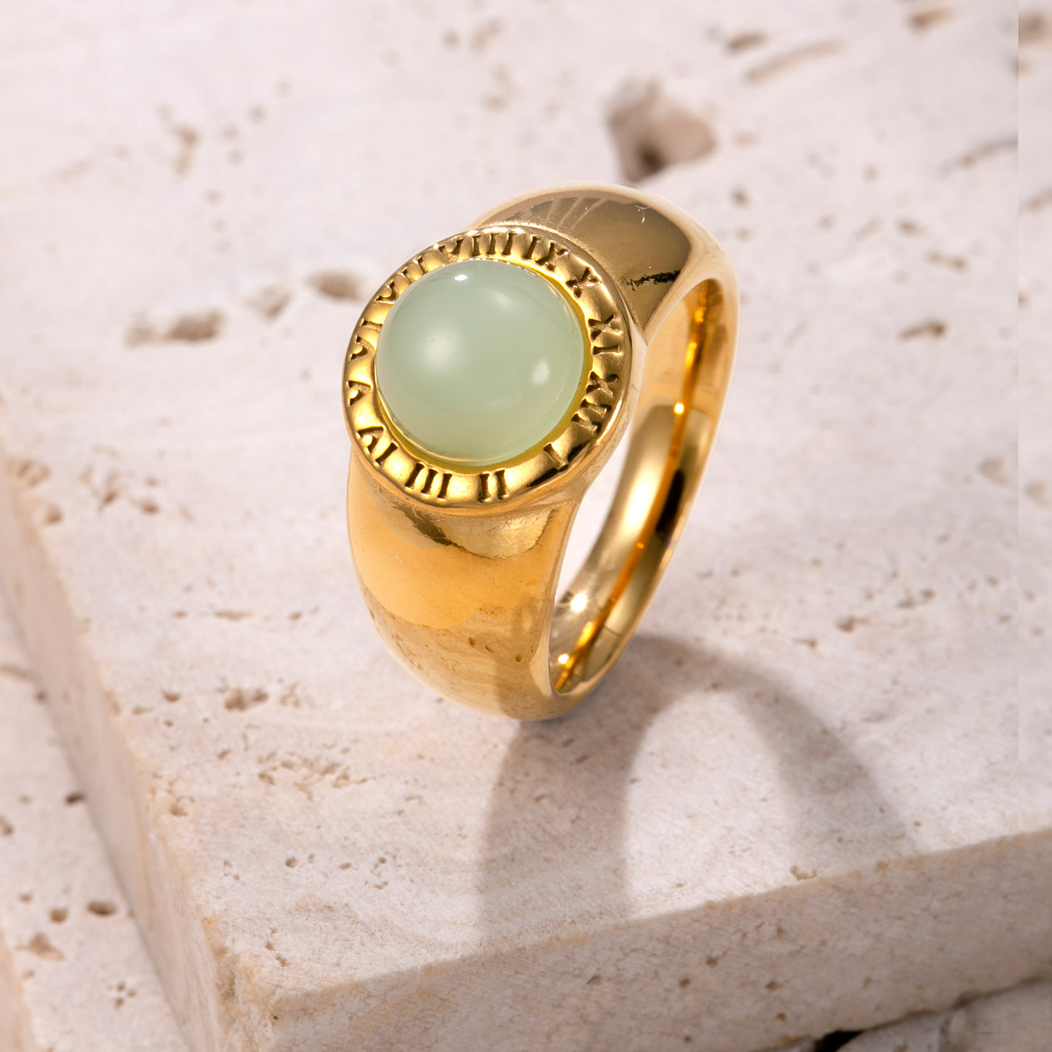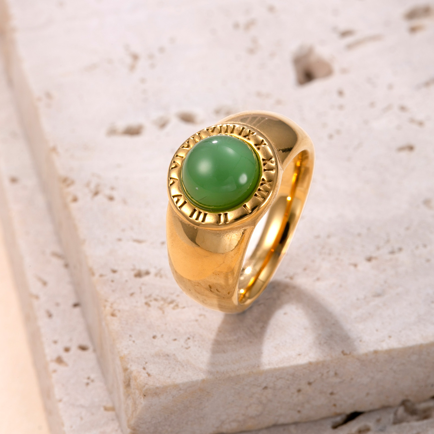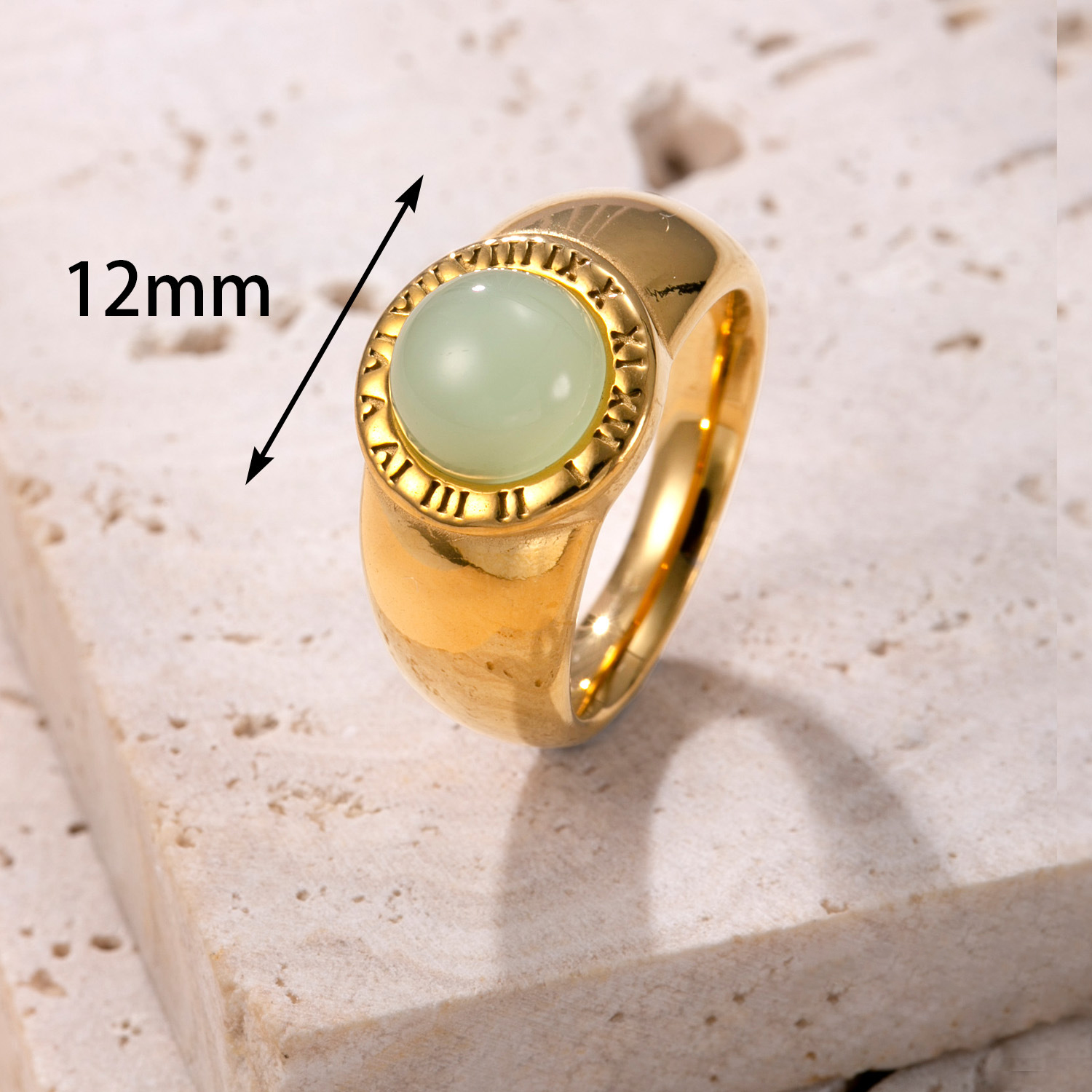 Acier inoxydable 304 bague, avec Pierre naturelle, Plaqué or 18K, bijoux de mode & unisexe & normes différentes pour le choix, plus de couleurs à choisir, Vendu par PC
