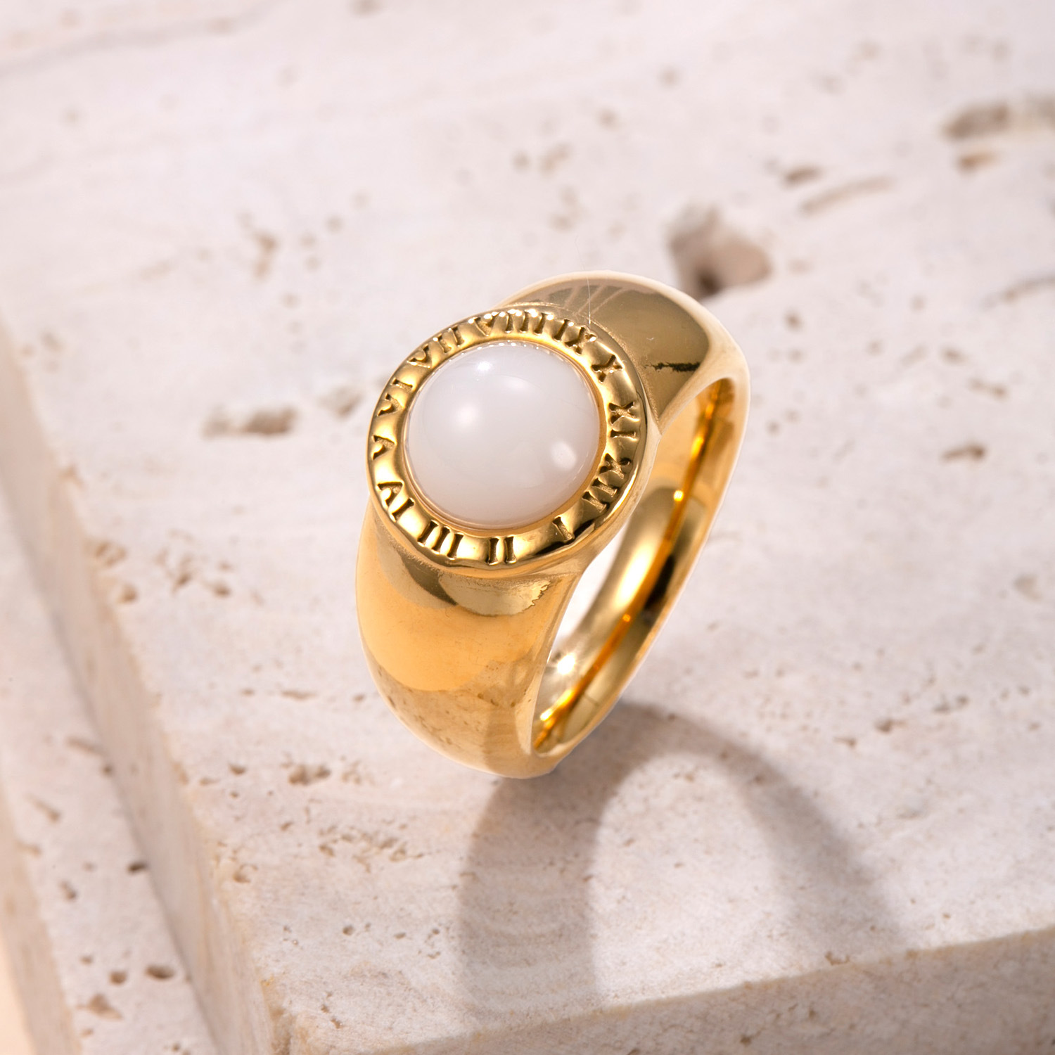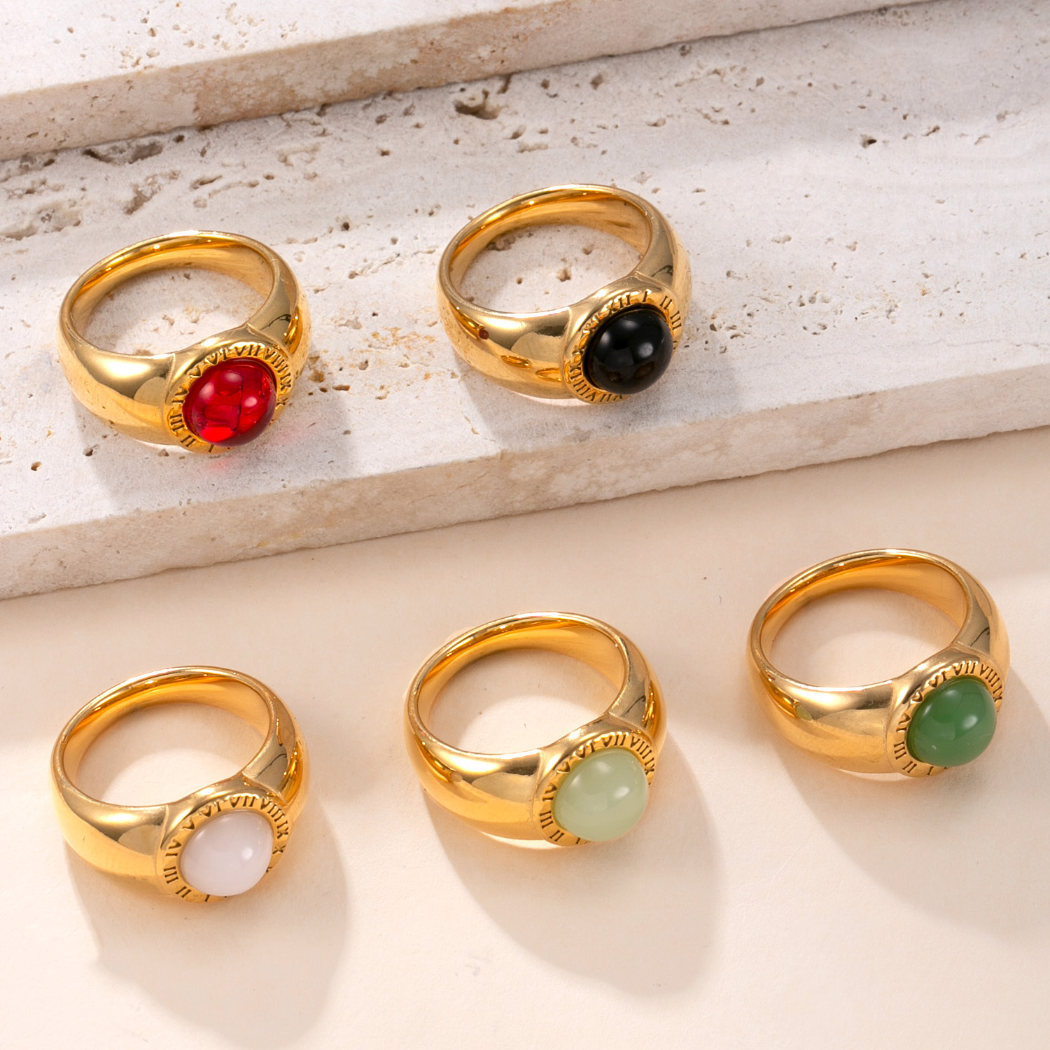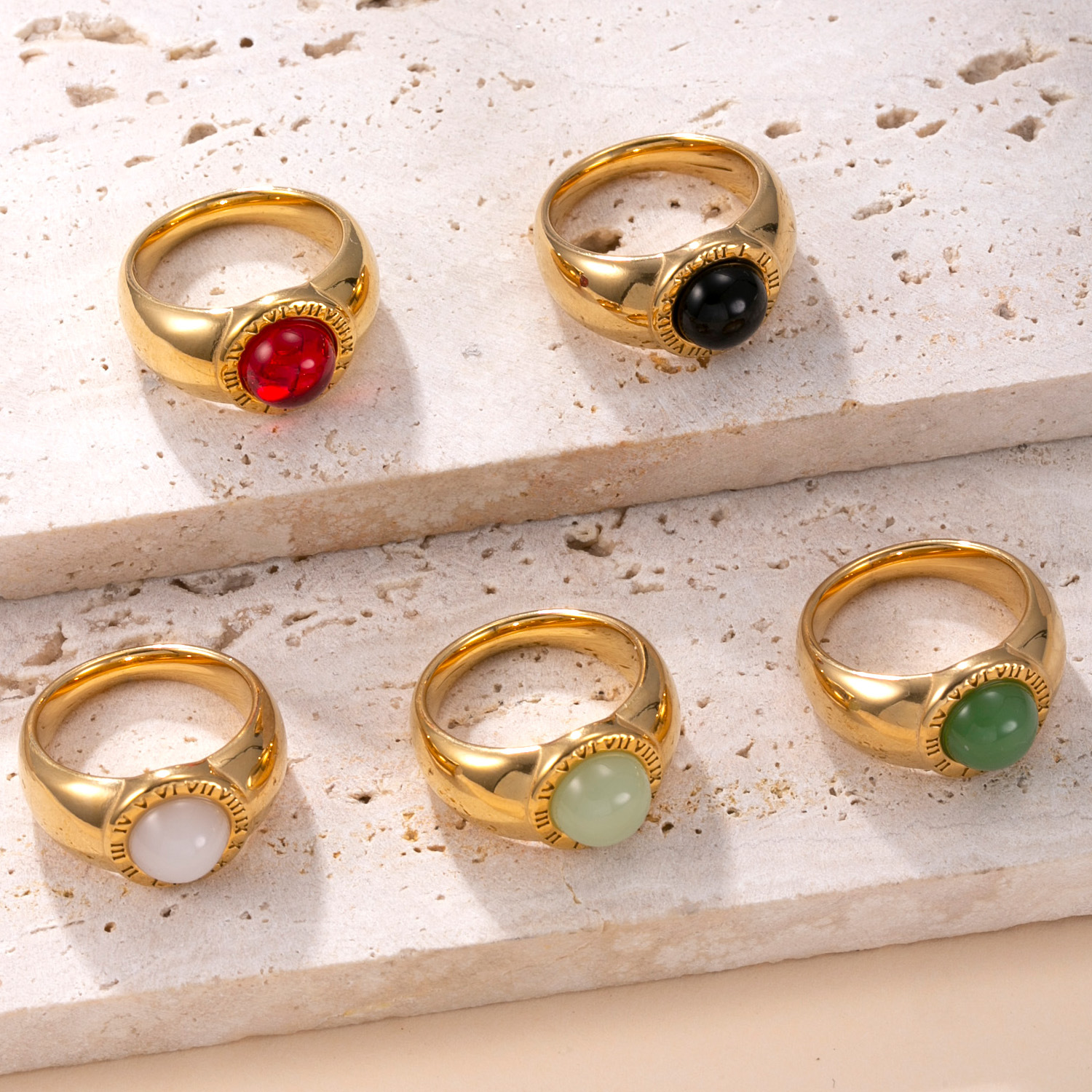 Acier inoxydable 304 bague, avec Pierre naturelle, Plaqué or 18K, bijoux de mode & unisexe & normes différentes pour le choix, plus de couleurs à choisir, Vendu par PC