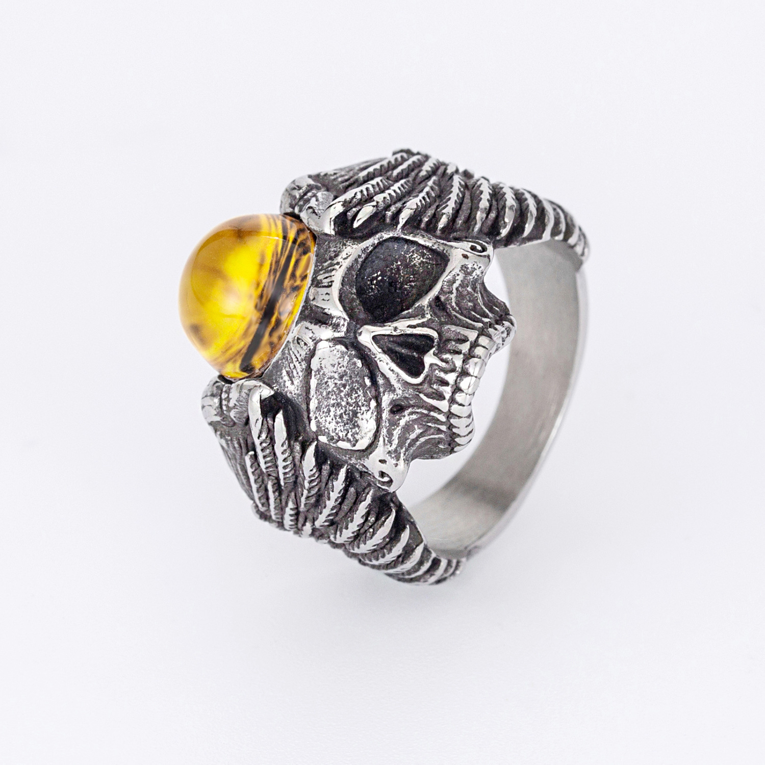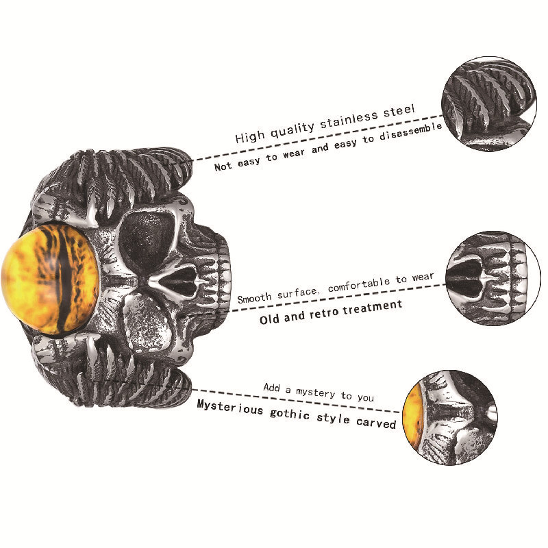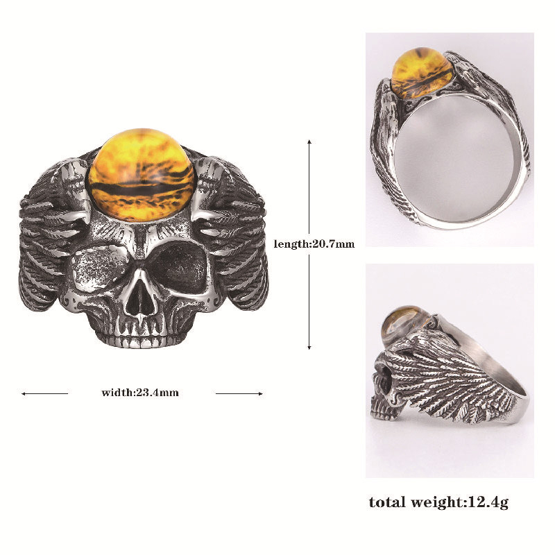 Acier inoxydable 304 bague, avec résine, crane, normes différentes pour le choix & pour homme & noircir, couleur originale, Taille:7-13, Vendu par PC