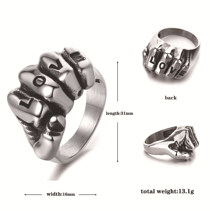 Acier inoxydable 304 bague, main, normes différentes pour le choix & pour homme & noircir, couleur originale, Taille:7-13, Vendu par PC