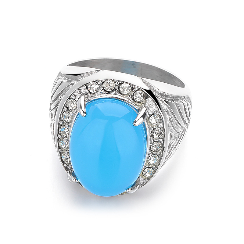 Acier inoxydable 304 bague, avec saphir, normes différentes pour le choix & pour homme & avec strass, couleur originale, Taille:7-13, Vendu par PC