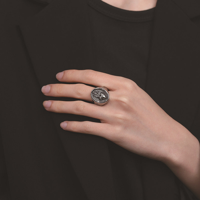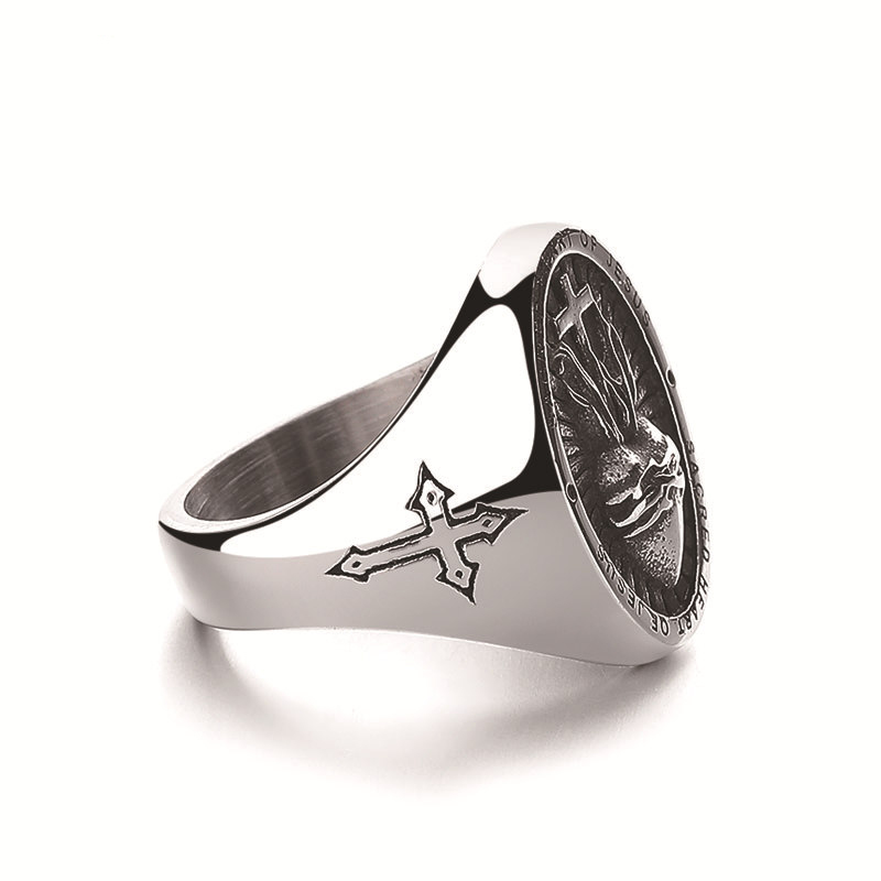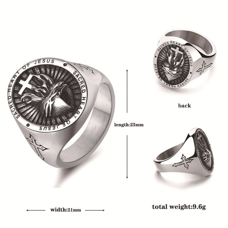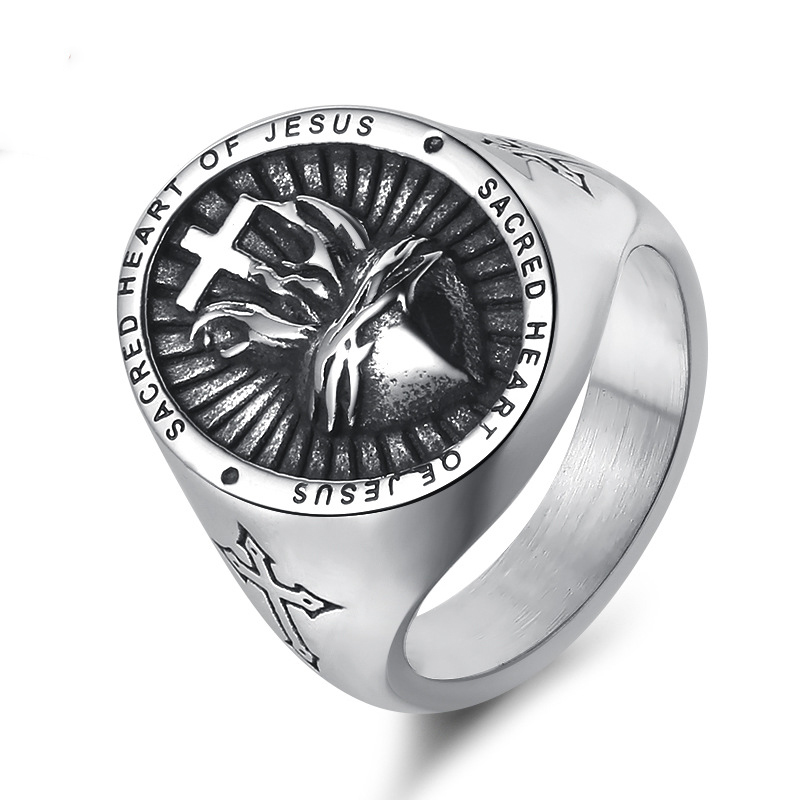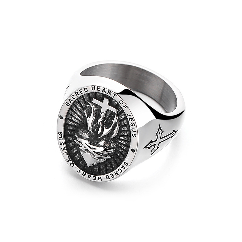 Acier inoxydable 304 bague, croix, normes différentes pour le choix & pour homme & noircir, couleur originale, Taille:7-13, Vendu par PC