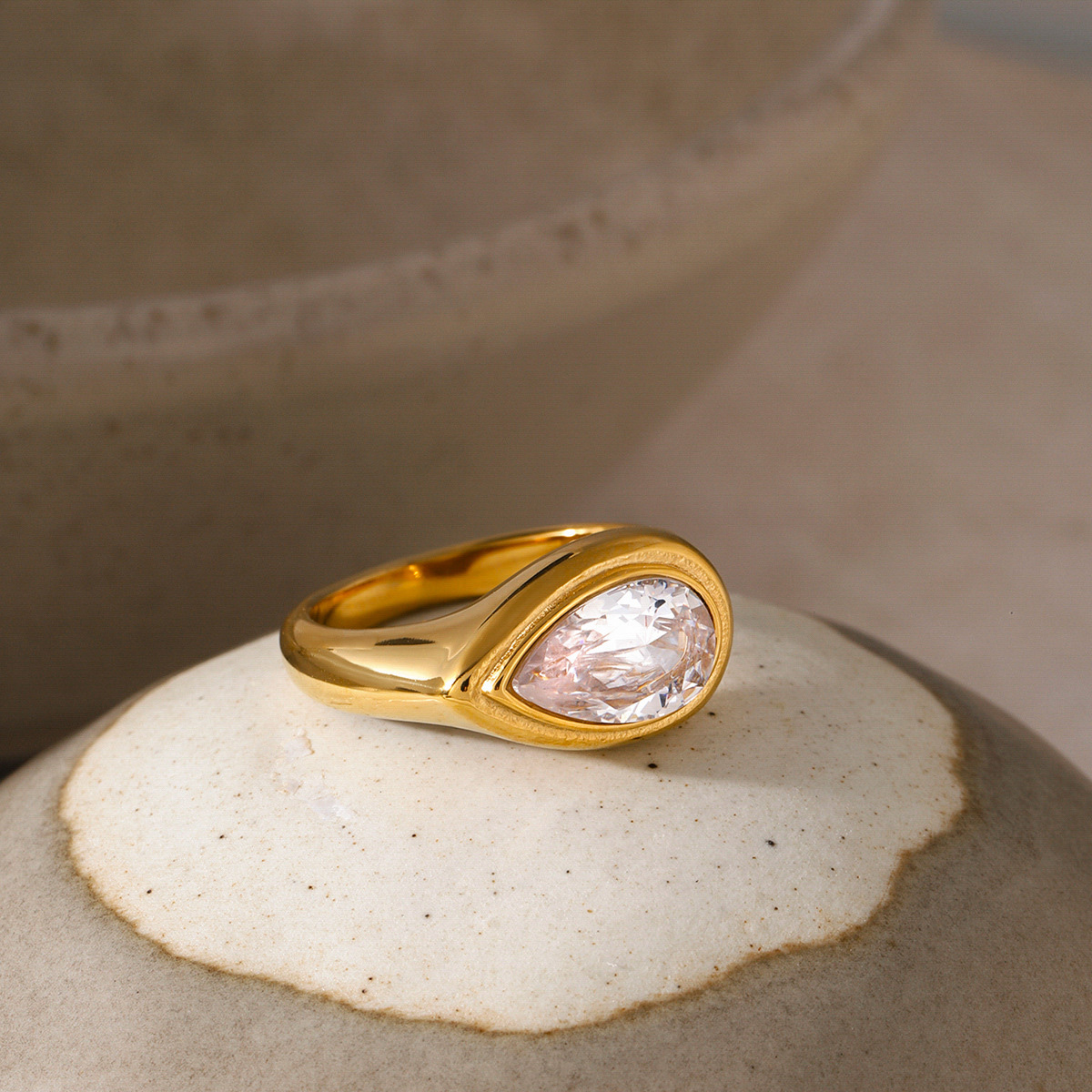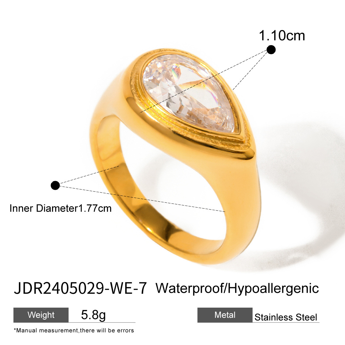 Acier inoxydable 304 bague, avec zircon cubique, Plaqué or 18K, bijoux de mode & pour femme, Taille:7, Vendu par PC