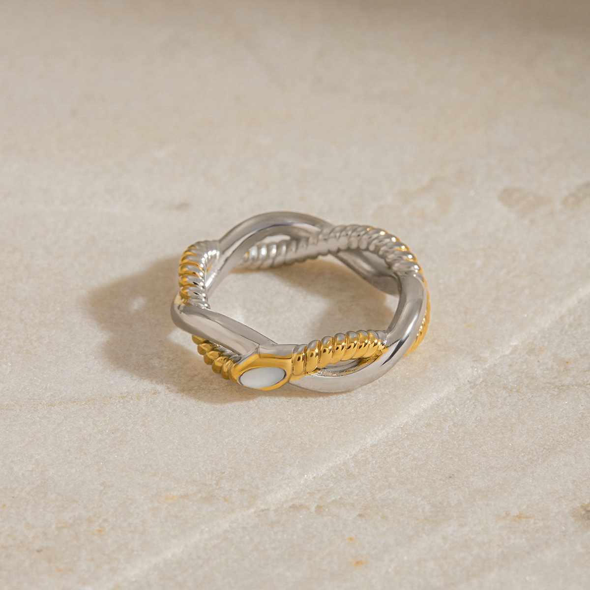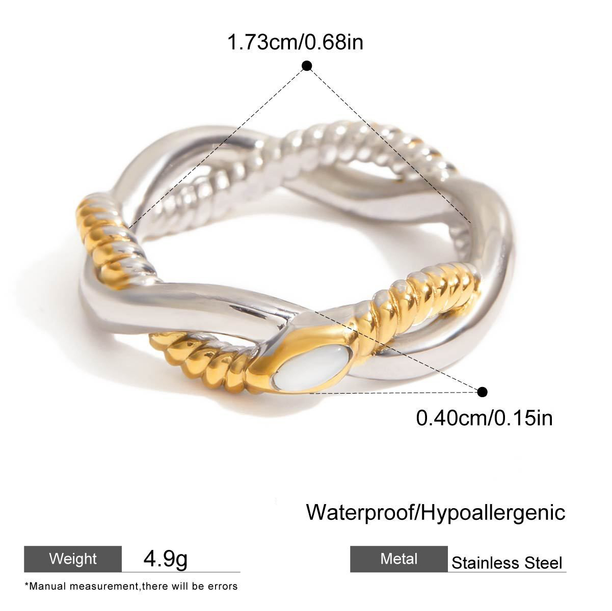 Acier inoxydable 304 bague, avec coquille blanche, Placage, normes différentes pour le choix & pour femme & deux tons & creux, Vendu par PC