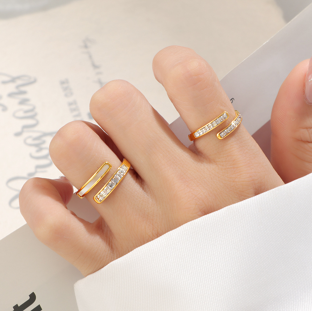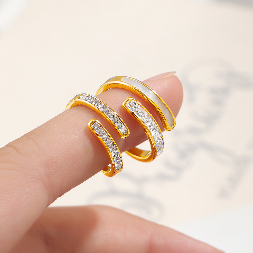 Acier inoxydable 304 bague, avec coquille blanche, Placage de couleur d'or, normes différentes pour le choix & styles différents pour le choix & pour femme & avec strass, Taille:5-10, Vendu par PC