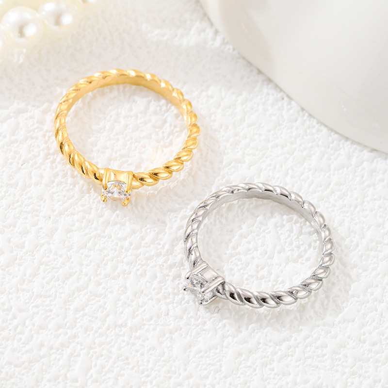 Bague en acier inoxydable Incrusté de zircon, 3mm, Vendu par PC