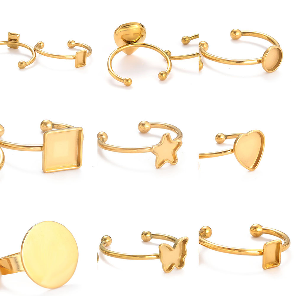 Acier inoxydable 304 base d'anneau écu, Placage ionique sous vide, Réglable & DIY & normes différentes pour le choix & pour femme, plus de couleurs à choisir, 20PC/sac, Vendu par sac