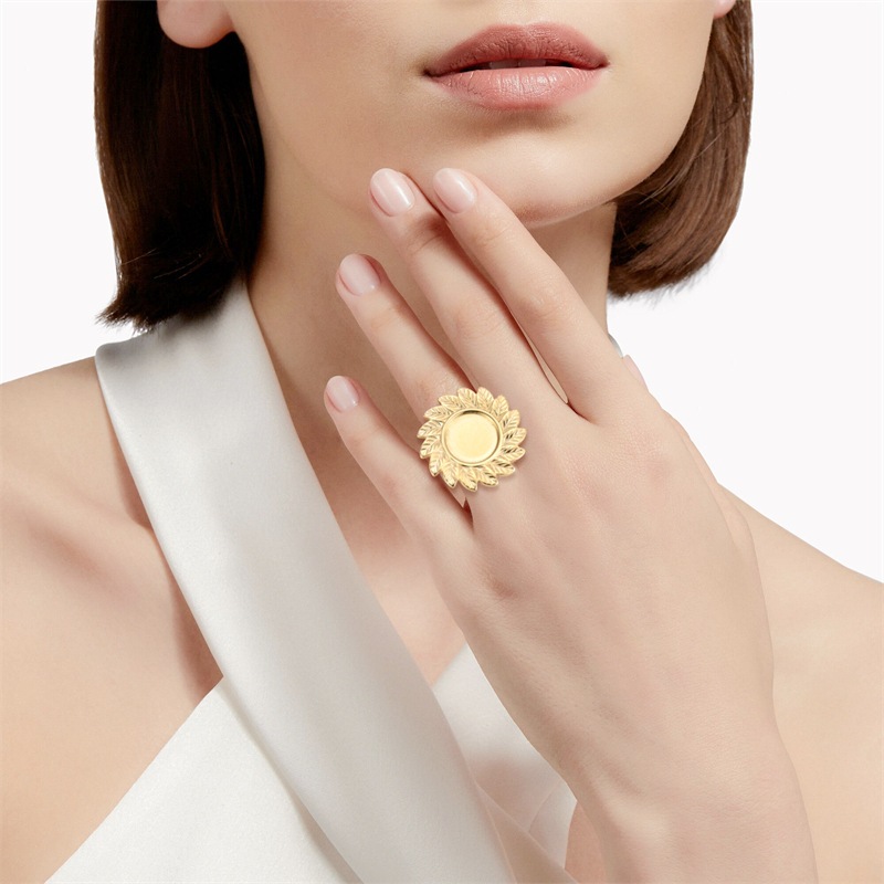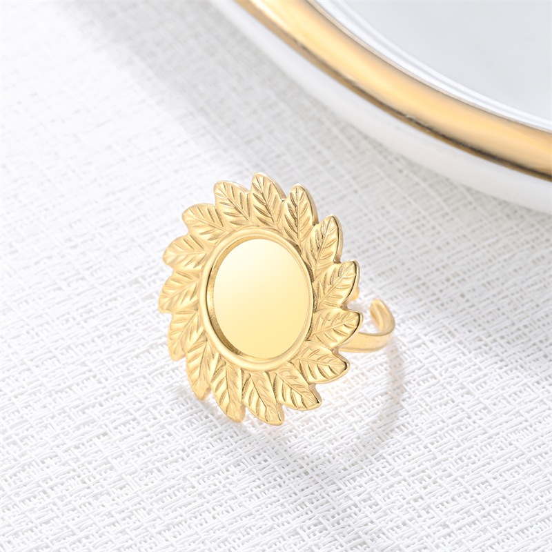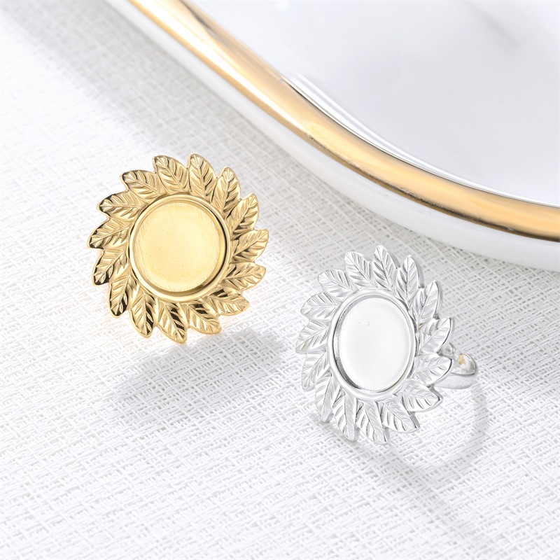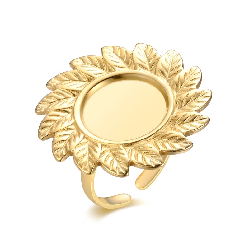Acier inoxydable 304 base d'anneau écu, fleur, Placage, bijoux de mode & pour femme, plus de couleurs à choisir, Vendu par PC