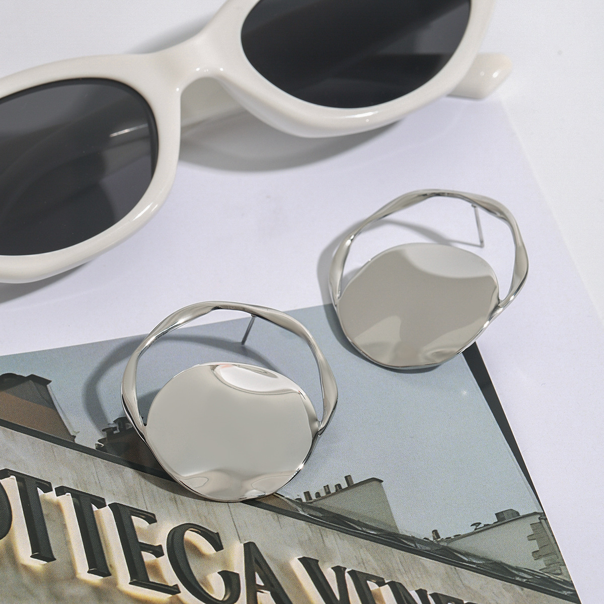 Boucle en acier inoxydable, acier inoxydable puce boucle d'oreille, Plat rond, avec strass Vendu par paire