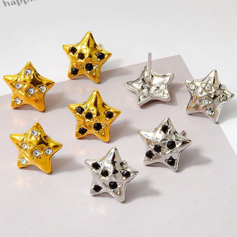 Acier inoxydable 304 boucle d oreille dormeuse, étoile, Placage, bijoux de mode & pour femme & avec strass, plus de couleurs à choisir, Vendu par paire