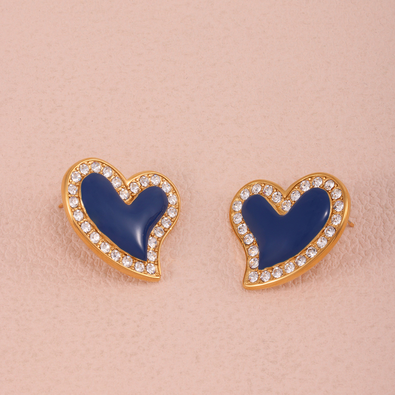 Acier inoxydable 304 boucle d oreille dormeuse, coeur, Placage, pavé de micro zircon & pour femme & émail, plus de couleurs à choisir, Vendu par paire