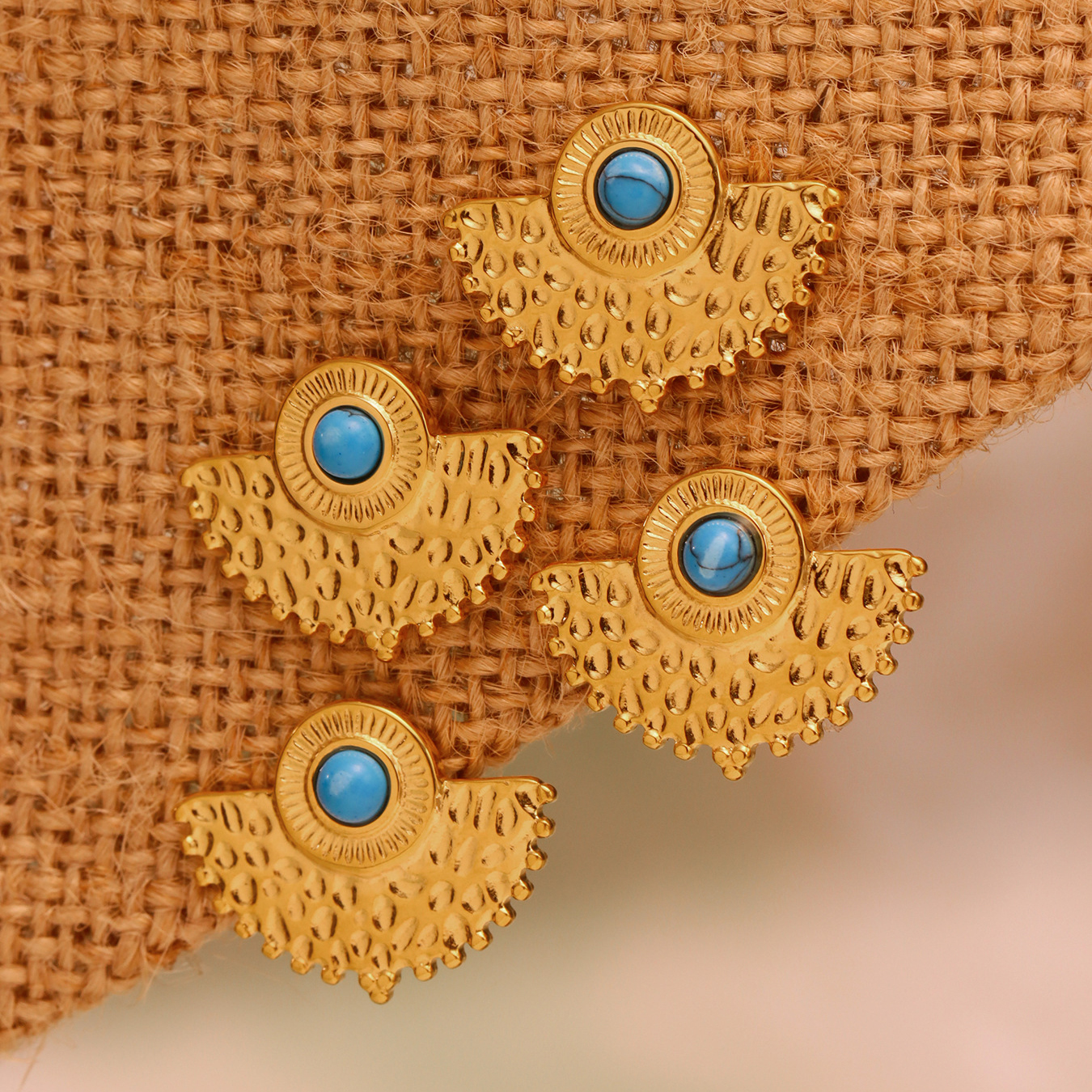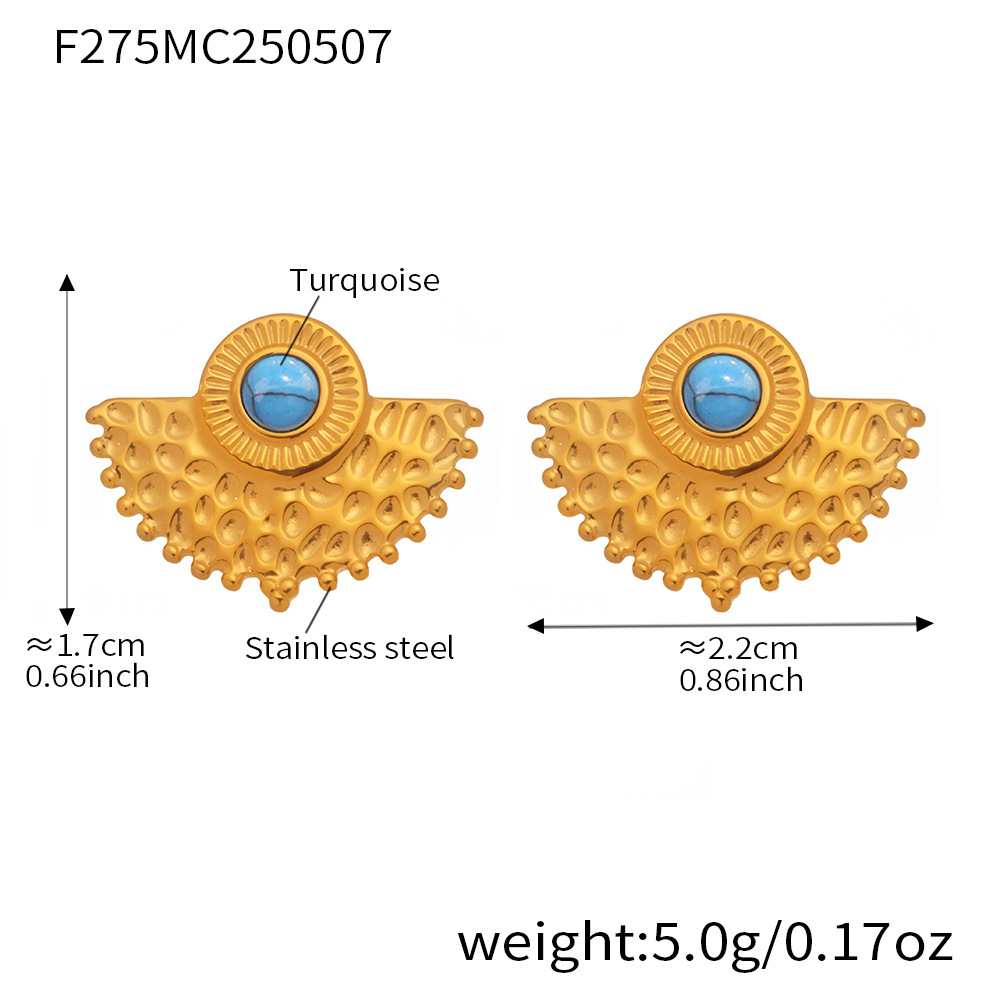 Acier inoxydable 304 boucle d oreille dormeuse, avec turquoise, éventail, Plaqué or 18K, bijoux de mode & pour femme, Vendu par paire