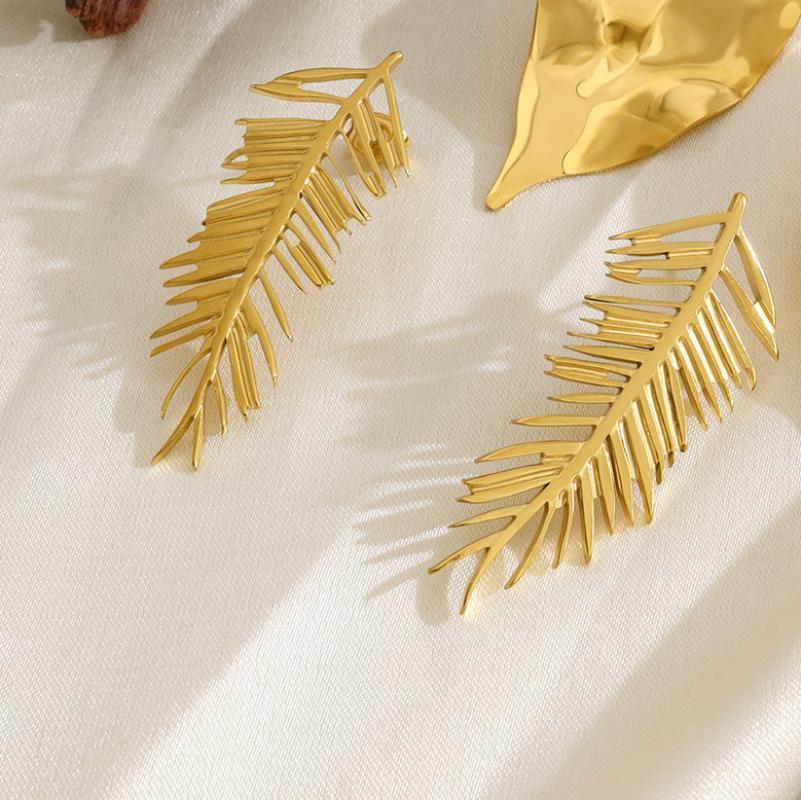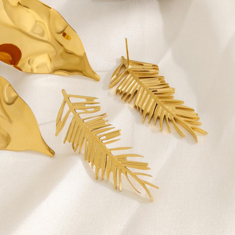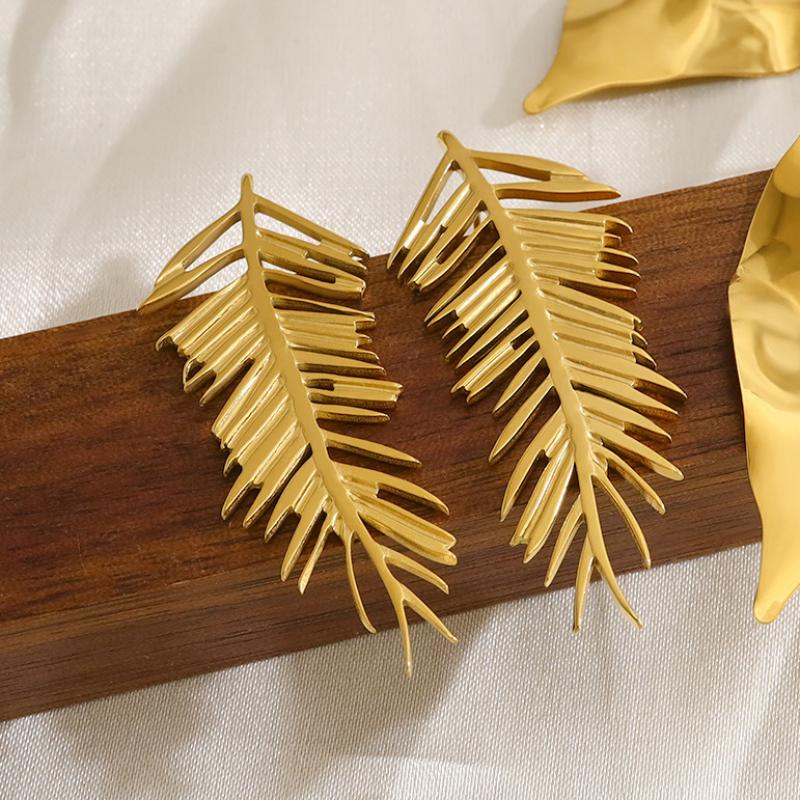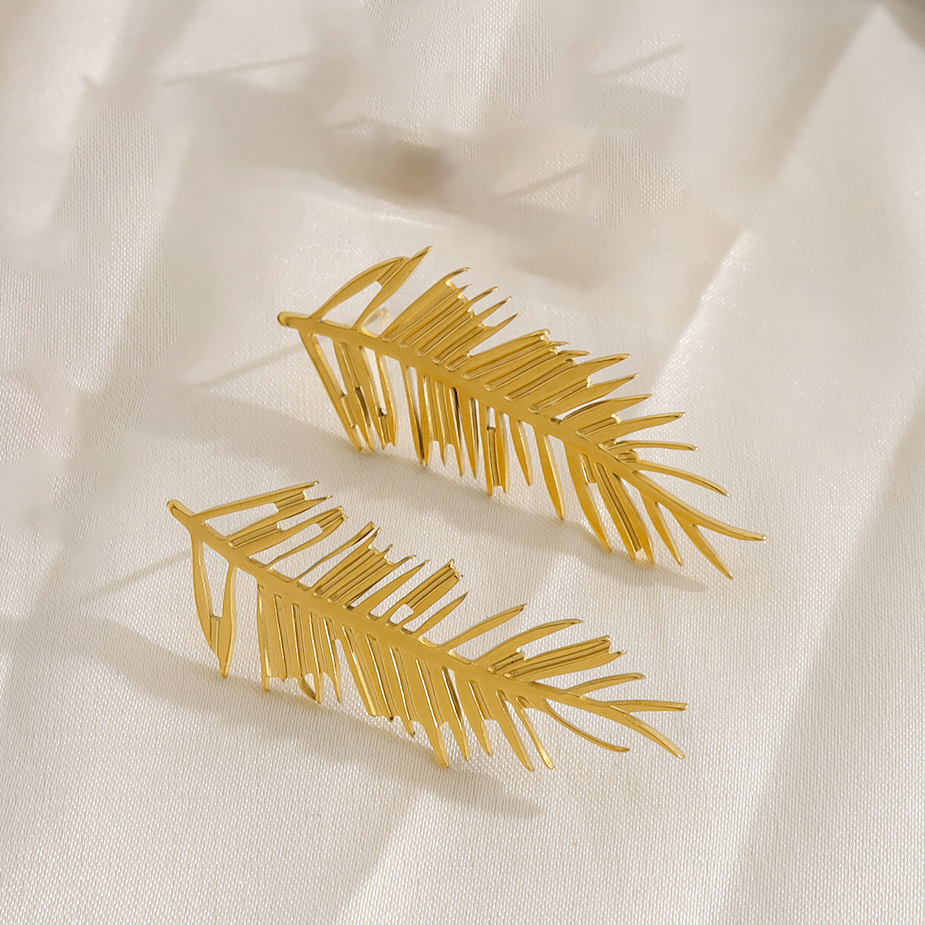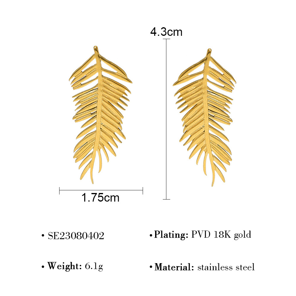 Acier inoxydable 304 boucle d oreille dormeuse, feuille, Plaqué or 18K, bijoux de mode & pour femme, Vendu par paire