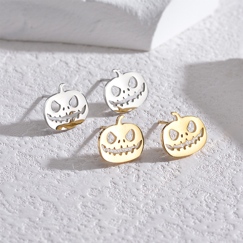 Acier inoxydable 304 boucle d oreille dormeuse, Citrouille, Placage, Halloween Design & pour femme & creux, Vendu par paire