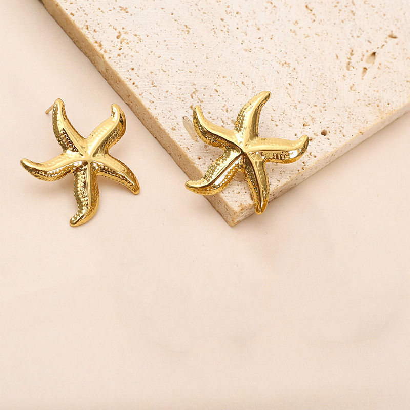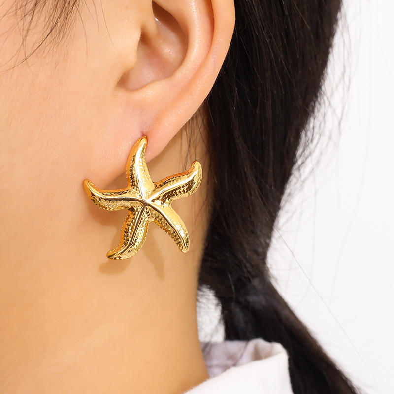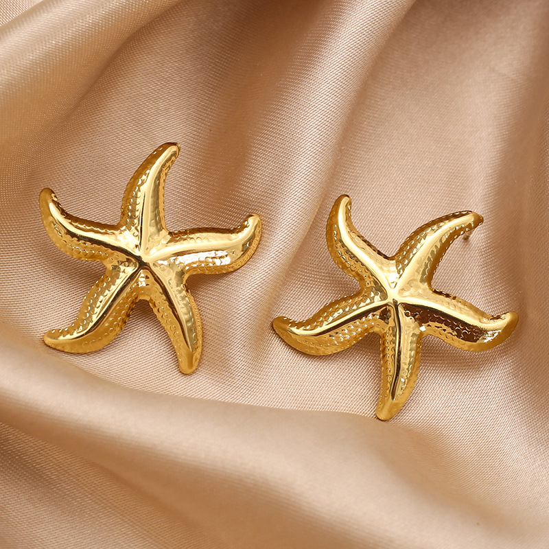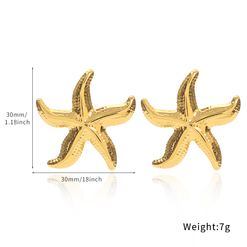 Acier inoxydable 304 boucle d oreille dormeuse, étoile de mer, Placage de couleur d'or, bijoux de mode & pour femme, 30x30mm, Vendu par paire