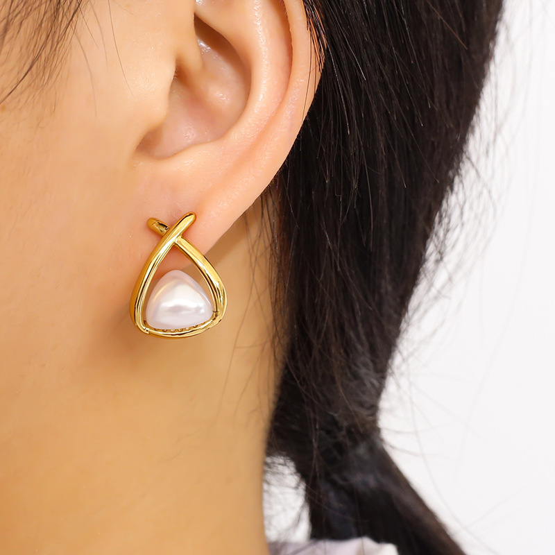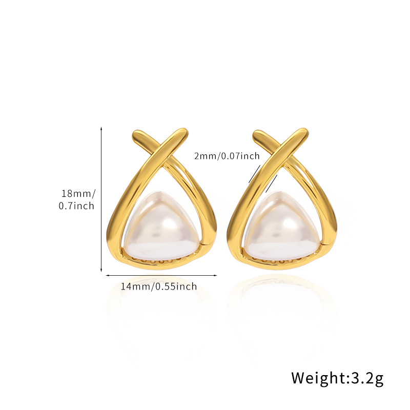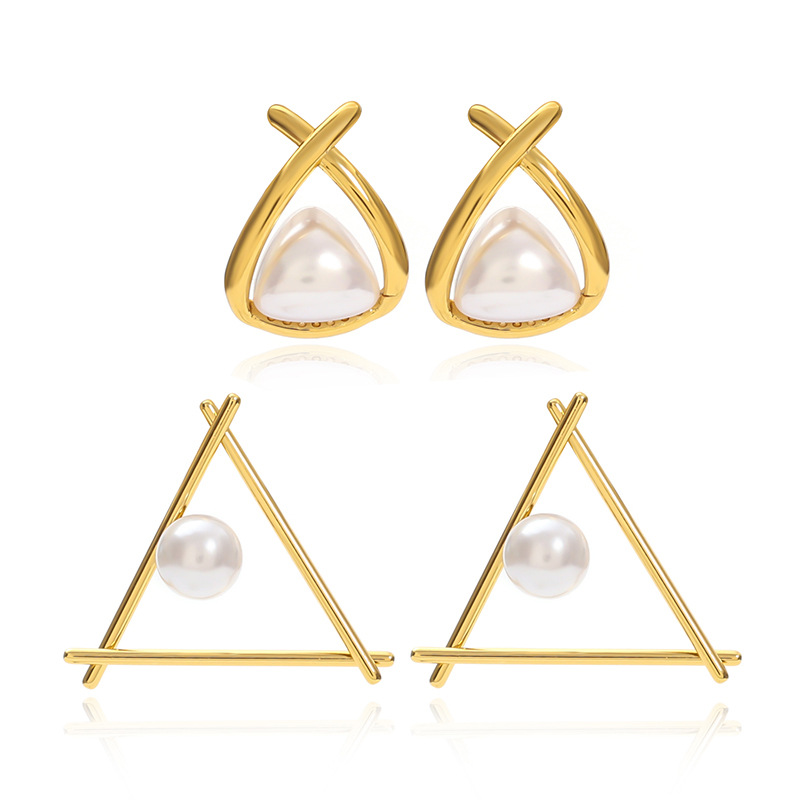 Acier inoxydable 304 boucle d oreille dormeuse, avec perle de plastique, triangle, Placage de couleur d'or, styles différents pour le choix & pour femme & creux, Vendu par paire