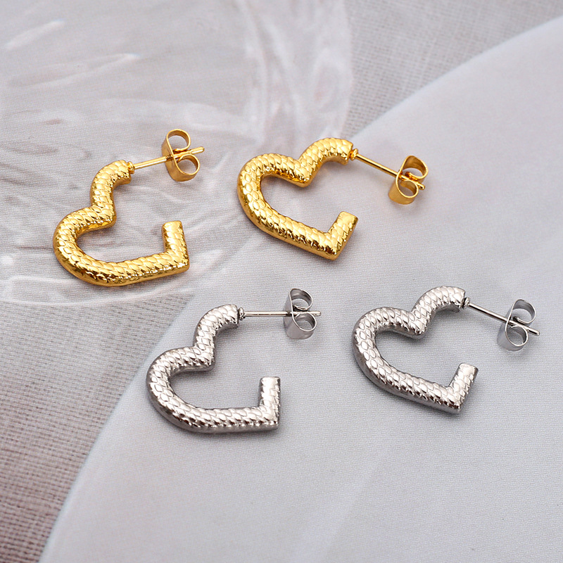 Boucle en acier inoxydable, acier inoxydable puce boucle d'oreille, coeur Vendu par paire