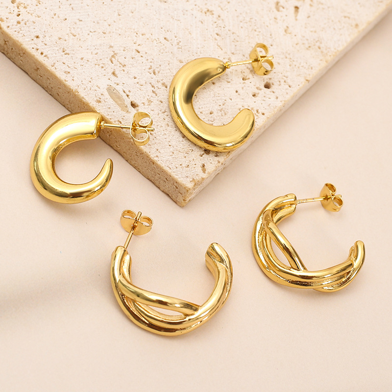 Boucle en acier inoxydable, Acier inoxydable 304, Plaqué d'or 14K, styles différents pour le choix & pour femme, Vendu par paire