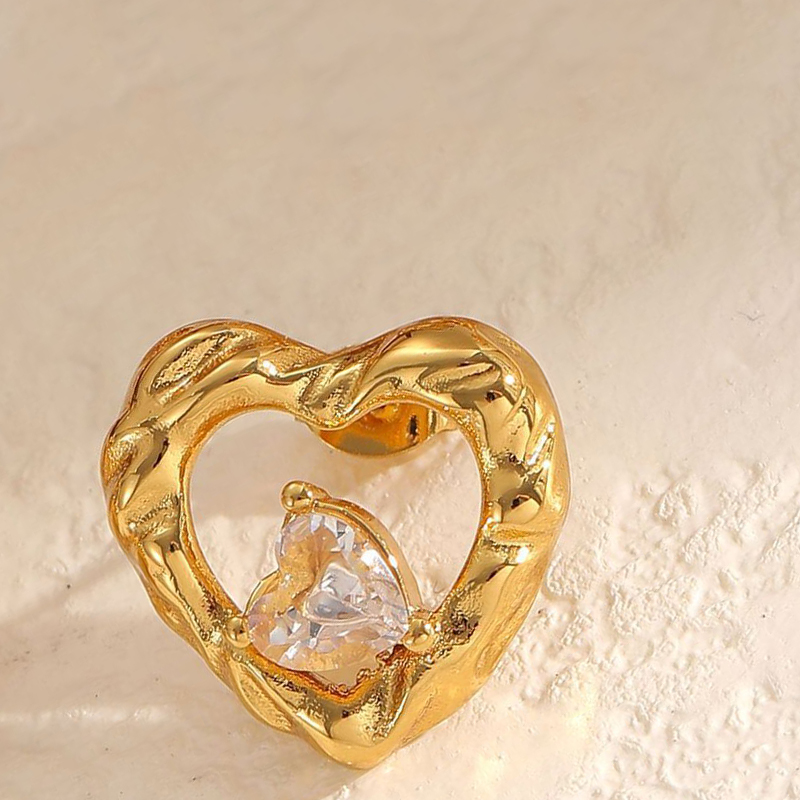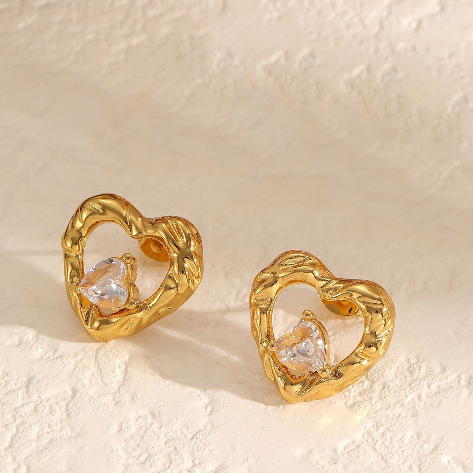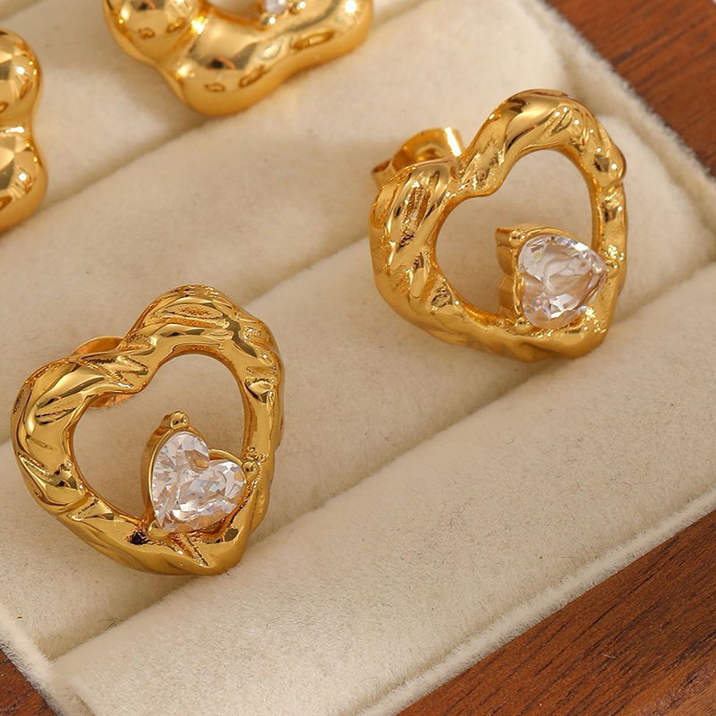 Boucle en acier inoxydable zircons cubiques, avec zircon cubique, acier inoxydable puce boucle d'oreille, coeur Vendu par paire