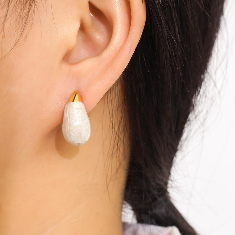 Acier inoxydable 304 boucle d oreille dormeuse, larme, Placage de couleur d'or, normes différentes pour le choix & pour femme & émail, Vendu par paire
