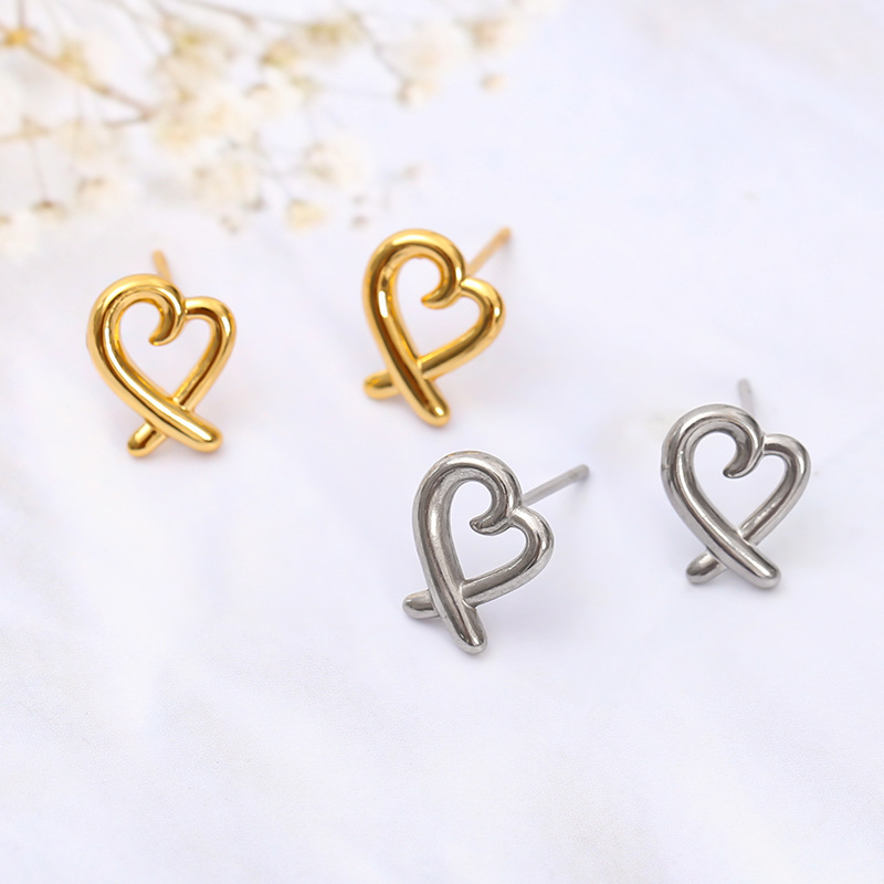 Boucle en acier inoxydable, acier inoxydable puce boucle d'oreille, coeur Vendu par paire