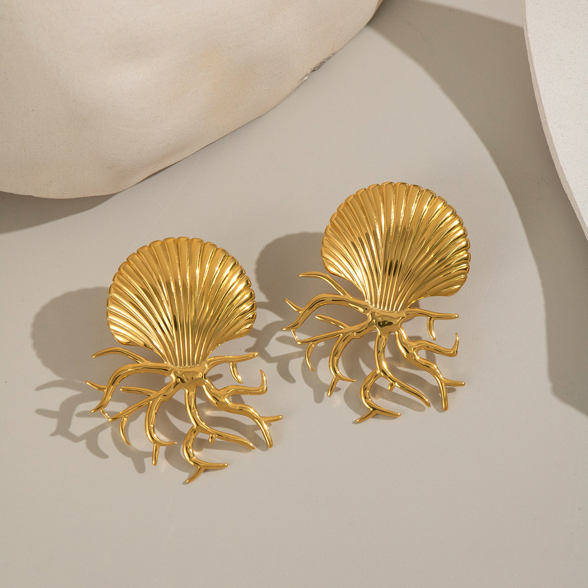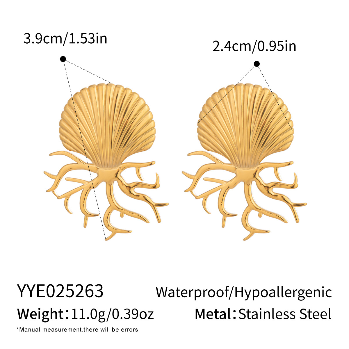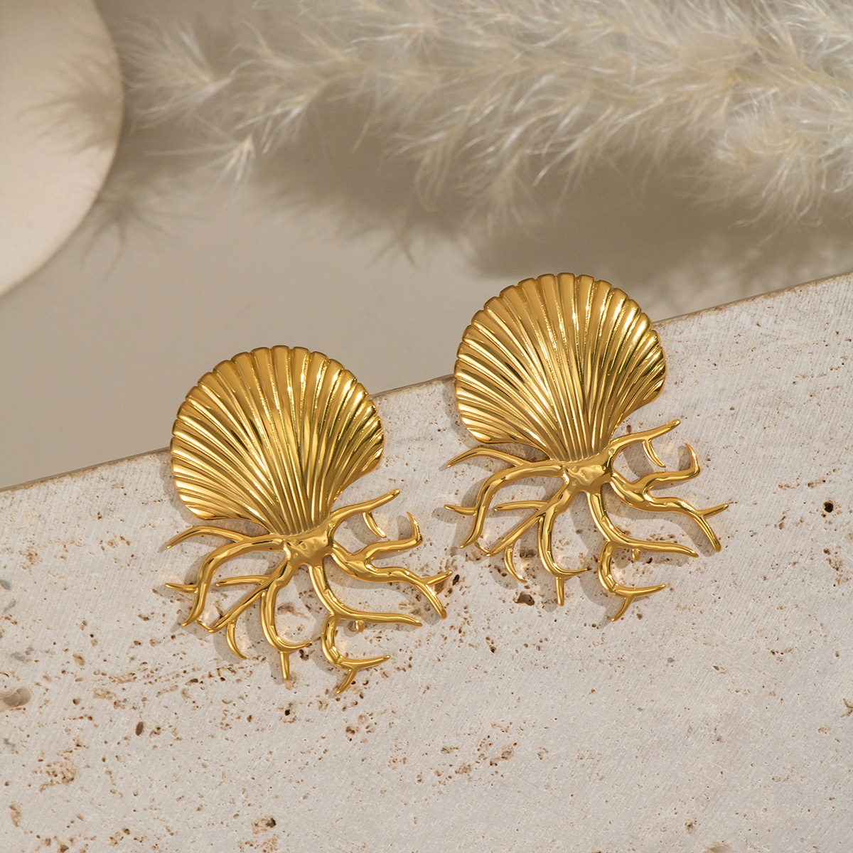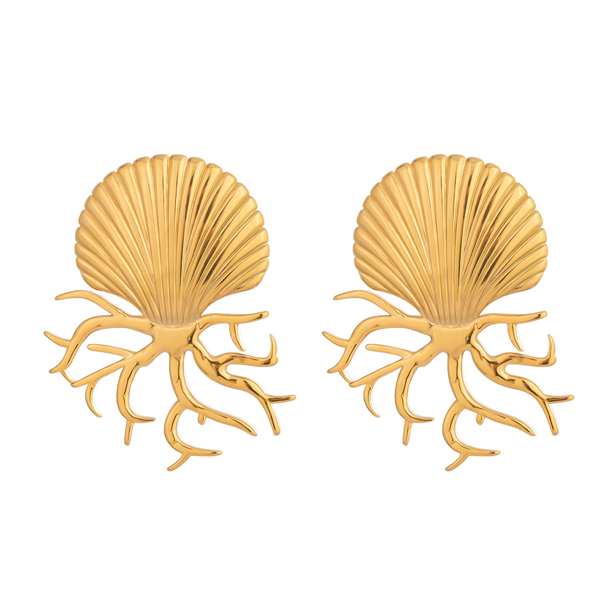 Acier inoxydable 304 boucle d oreille dormeuse, coquille, Placage de couleur d'or, bijoux de mode & pour femme, 24x39mm, Vendu par paire