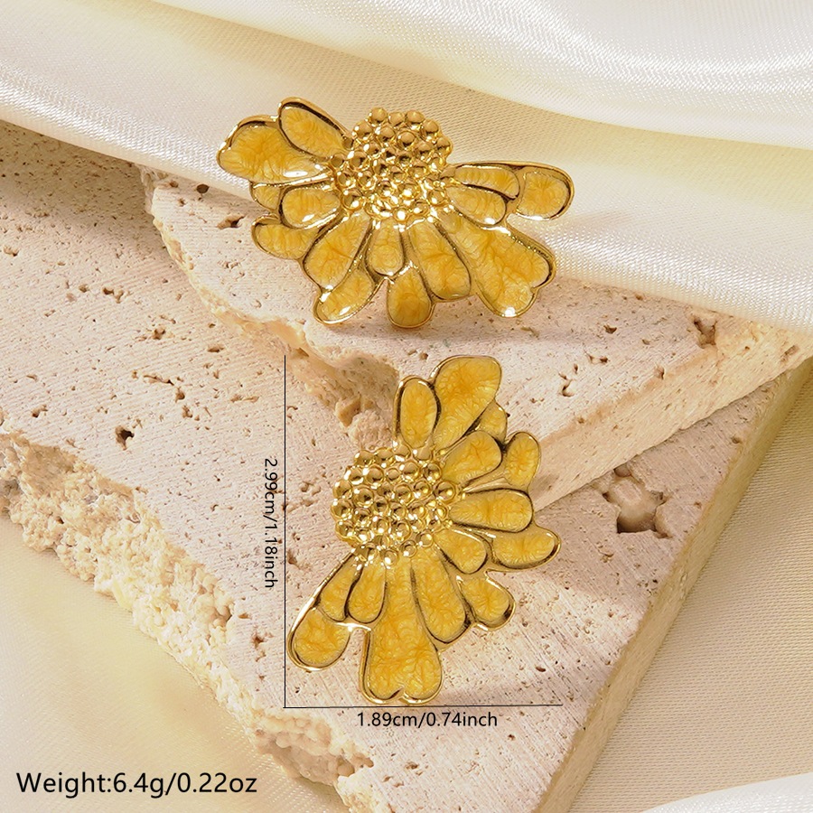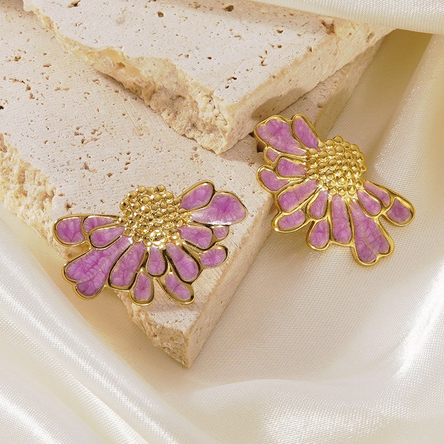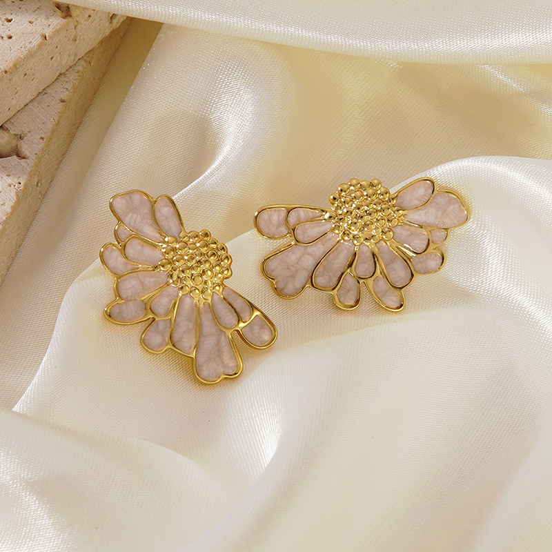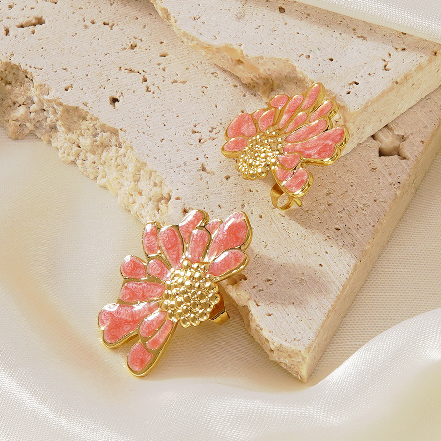 Acier inoxydable 304 boucle d oreille dormeuse, fleur, Placage de couleur d'or, pour femme & émail, plus de couleurs à choisir, 18.9x29.9mm, Vendu par paire
