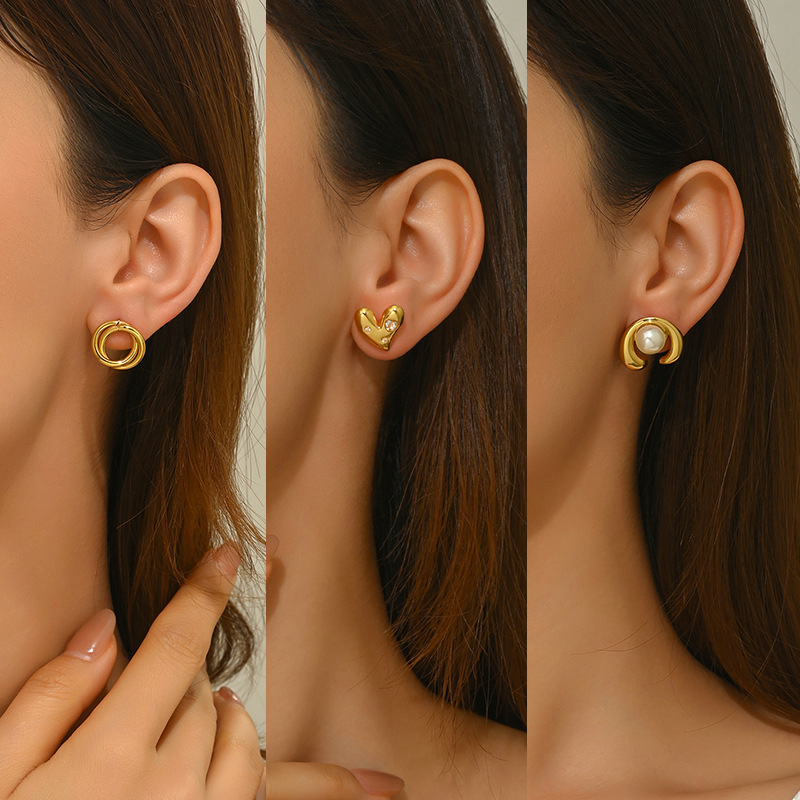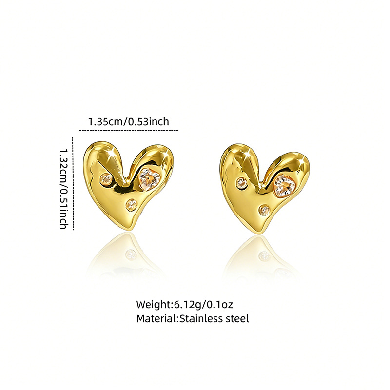 Boucle en acier inoxydable zircons cubiques, avec zircon cubique, acier inoxydable puce boucle d'oreille, coeur Vendu par paire