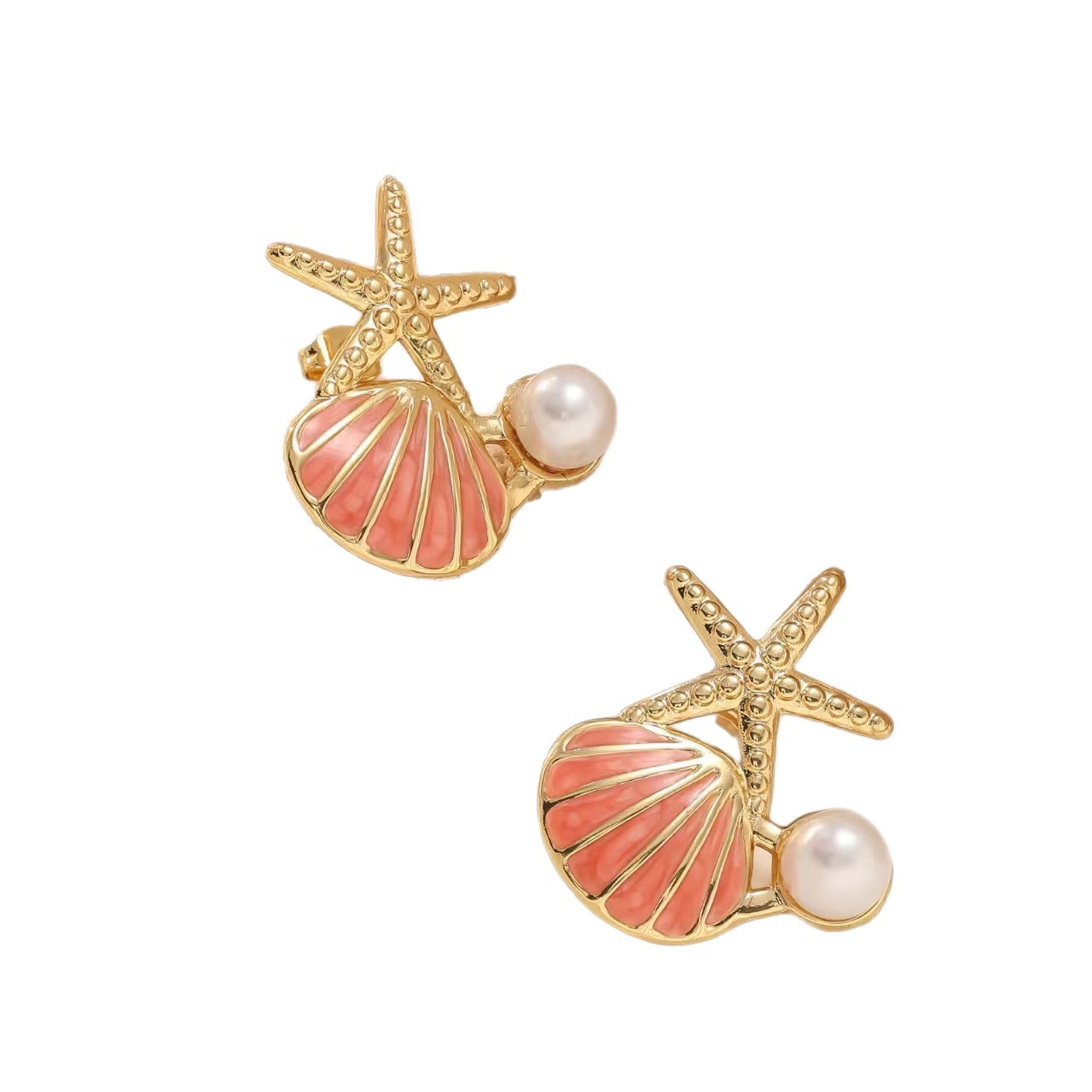 Acier inoxydable 304 boucle d oreille dormeuse, avec perle de plastique, étoile de mer, Placage de couleur d'or, pour femme & émail, plus de couleurs à choisir, 25x30mm, Vendu par paire