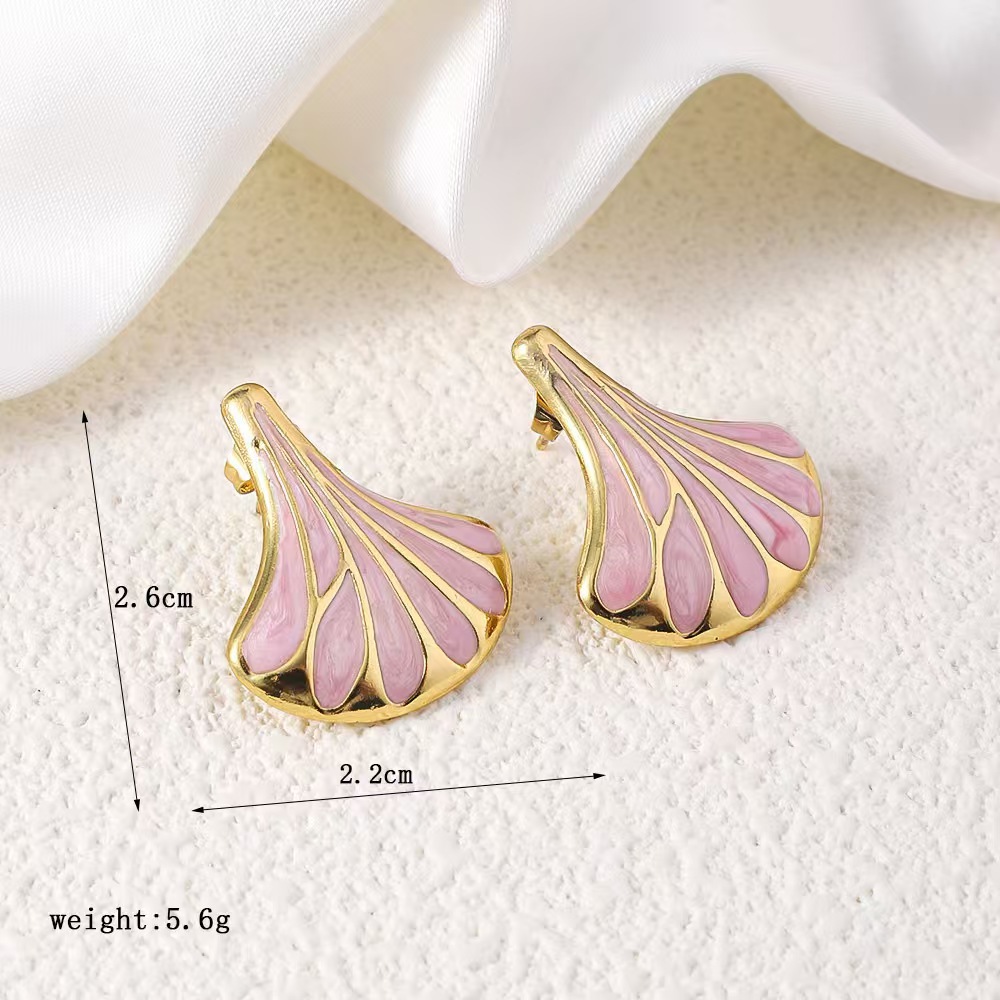 Acier inoxydable 304 boucle d oreille dormeuse, éventail, Placage de couleur d'or, pour femme & émail, plus de couleurs à choisir, 22x26mm, Vendu par paire