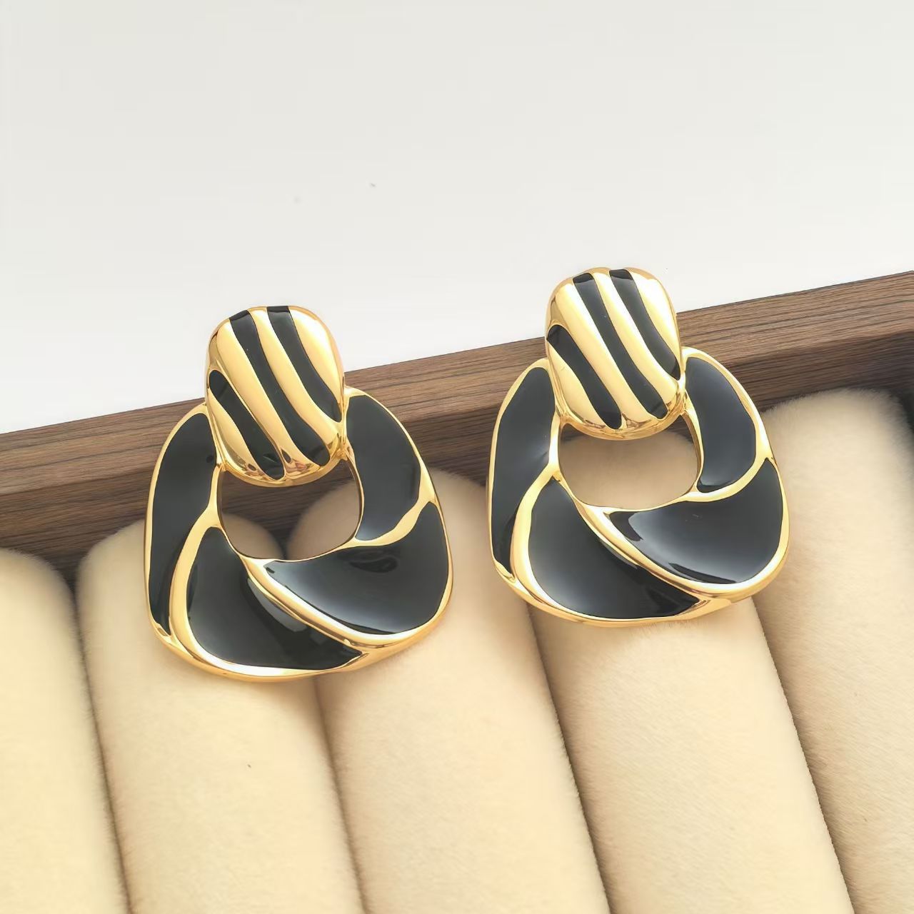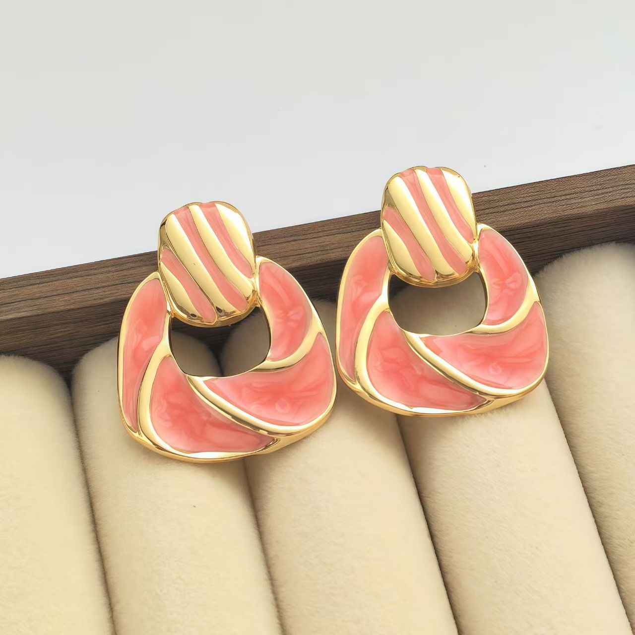 Acier inoxydable 304 boucle d oreille dormeuse, Motif géométrique, Placage de couleur d'or, pour femme & émail & creux, plus de couleurs à choisir, 20x30mm, Vendu par paire